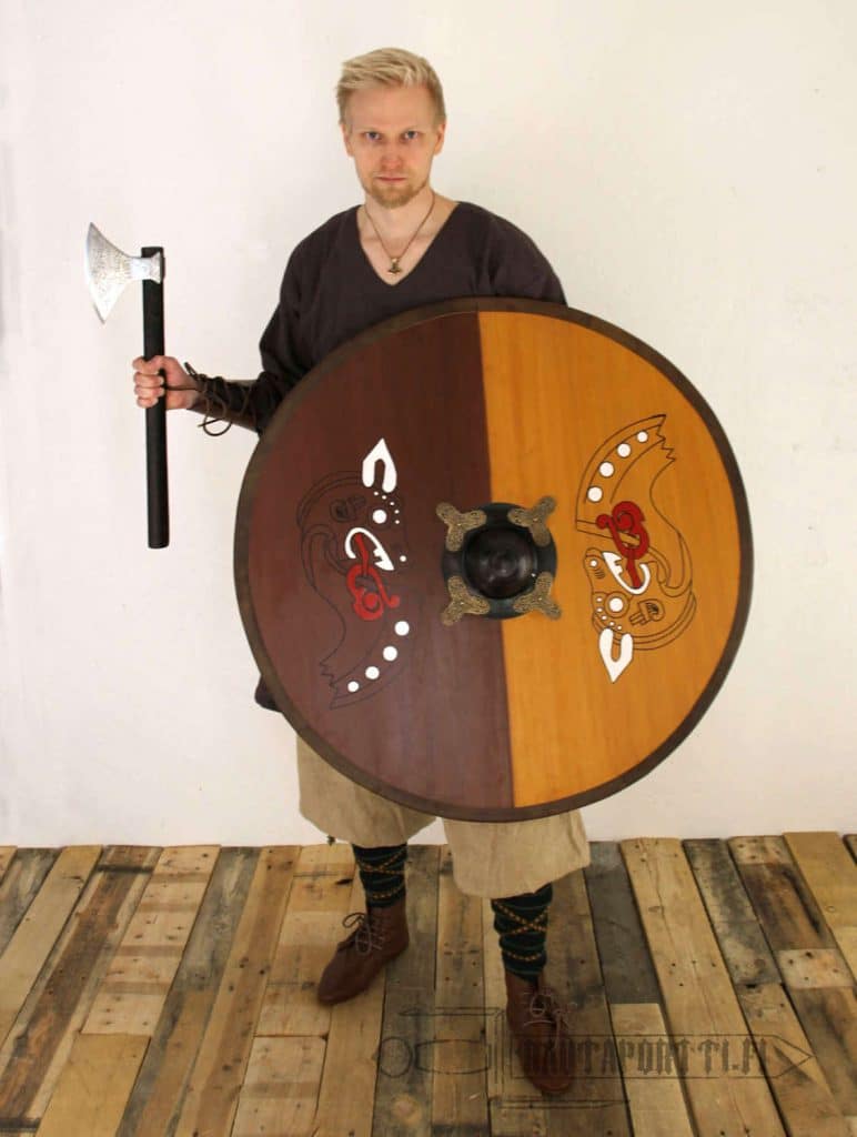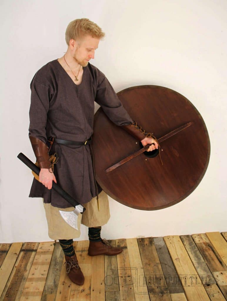 Although not every Viking could afford a sword or an iron helmet, a shield protected even a spearman. With the tactics employed by the Vikings, a man without a shield would have been a dead one very quickly, and therefore a shield was the primary piece of armor a warrior heading for battle would acquire. The shields were used not only defensively, but also imaginatively in various attacks.