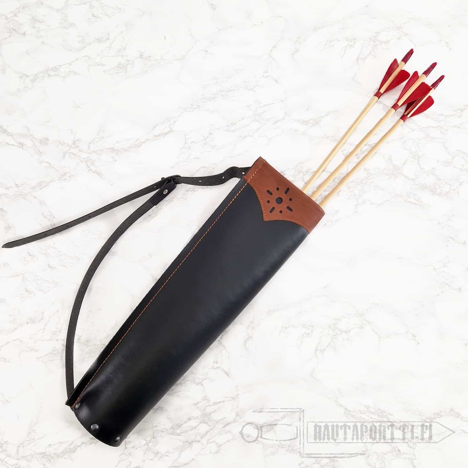 This quiver can be used to carry the arrows of Children’s Bow (lenght 48cm) as well as arrows of the Youth Long Bow (lenght 61–64cm).
