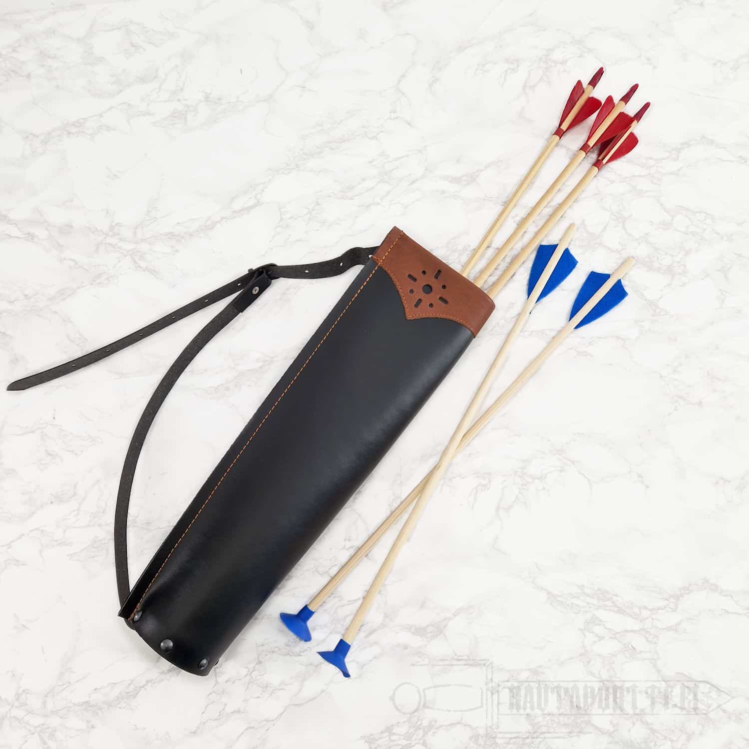 A quiver is meant for transporting arrows safely, and nowhere is safety more important than when when kids are concerned. As well as protecting the child and others from the arrows, the quiver also protects the arrows from accidental breakage, making it the perfect place to store arrows. This children’s quiver is made of imitation leather and has decorative metal studs on both the mouth and bottom of the quiver. The quiver comes with a belt which closes with a buckle. With the belt the quiver can be carried on the back or on the hip. Whichever way you choose to carry your arrows is up to you.