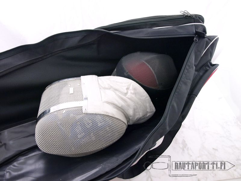 Generous size of this bag will allow for 2 masks Sword compartment is split into 2 sections running along the full length of the bag, so it is possible to keep your swords separate Two large front pockets are great for storing gloves, sword parts, gorgets and water bottle This bag is constructed from heavy duty material with robust zips and features 2 carry handles and a pair of adjustable straps on the backside to allow the bag to be carried as a rucksack Length: 117 cm