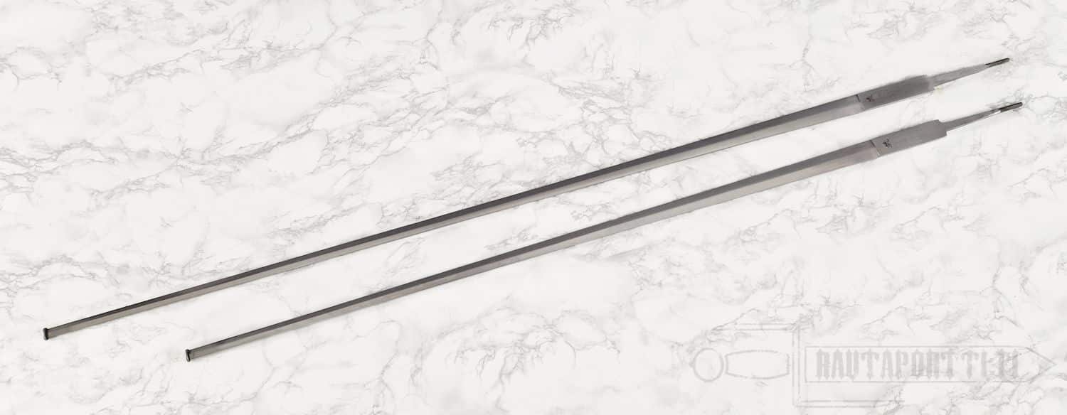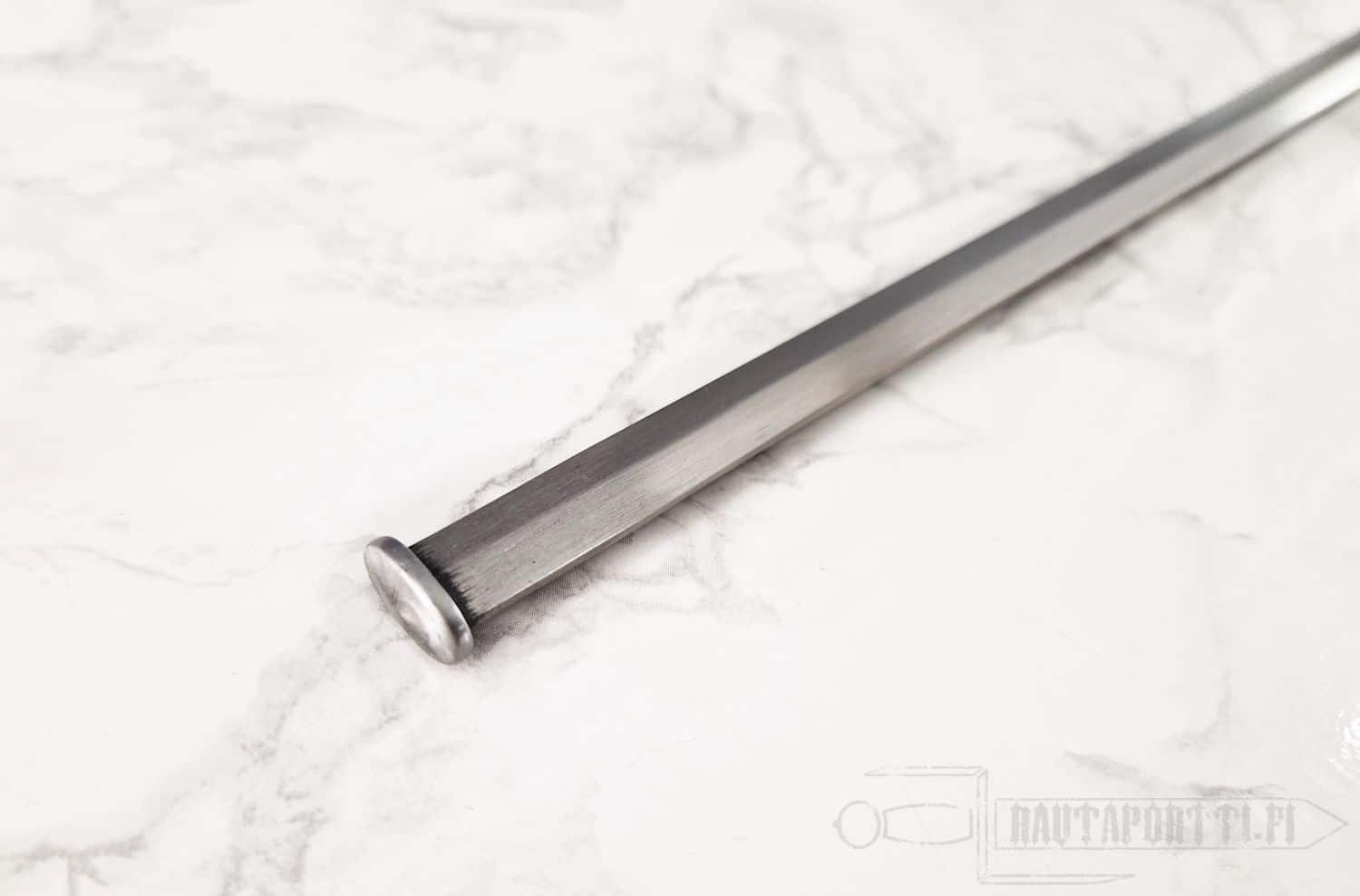 These fencing rapier blades have been designed as replacement parts for the Practical Rapier, and they do not come with hilt, guard or pommel parts. The blunt sparring blade may be used to replace a severely worn sparring blade. It can of course also be used as a basis for building your own sword. After all fashioning your own guard, hilt and pommel may be more manageable to start with, than forging your own blade.