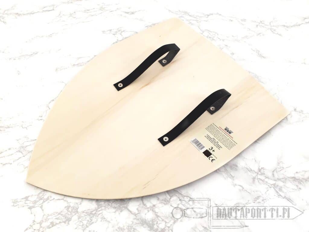 The shield measures approximately 36 cm wide and 50 cm high Weight 520 g There are two straps at the back of the shield for correct and optimal use and carrying Made of sturdy plywood Made in EU