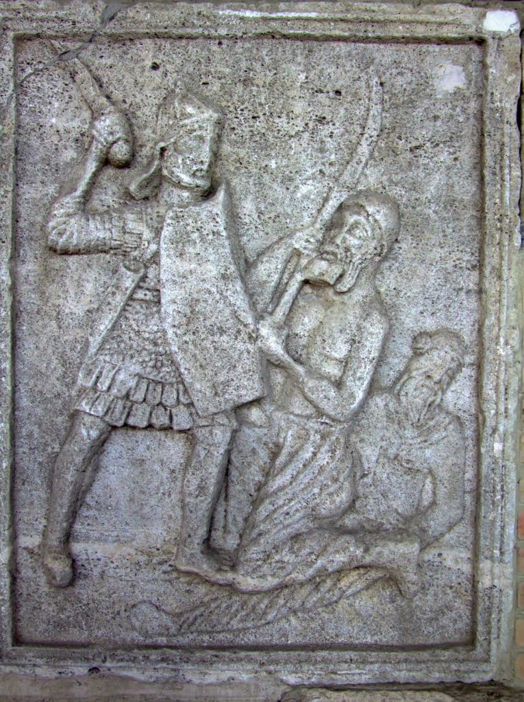 Manica is Latin and simply means sleeve. As the name suggests, manica protected the wearer’s arm, like a sleeve. Manica consisted of overlapping iron or bronze plates and provided good protection for the sword or spear hand. The Legionnaire’s other hand was already very well protected, under the large shield, so the manica was only used in the sword hand. In addition to Roman legionnaires, manica was also used by gladiators.