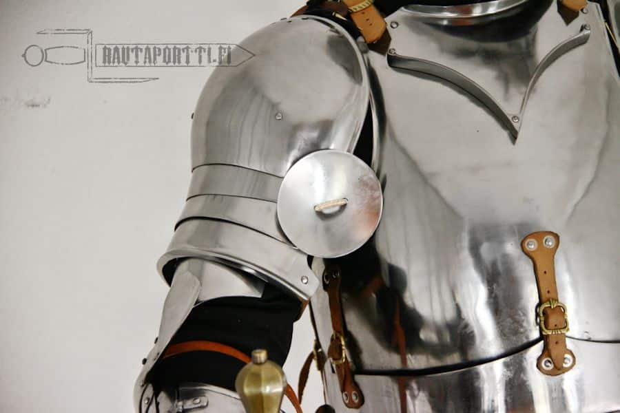 Rondels were also used to give extra protection to elbow, to the back of the hand and to cover the gap between the helmet and back plate and thus give extra protection to the neck.