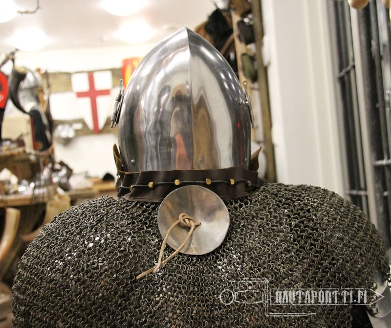 To cover up weak points in armor a small round extra plate was often used. This armor plate is called a rondel and it could have made all the difference in tight battles where winning and losing was hung from a thread. Typical use of a rondel was to cover the armpit of a plate armor. Plate armor gives excellent protection against most attacks but is vulnerable inside the armpit where your opponent most likely will try to thrust through. A rondel covering the armpit was called a besagew.