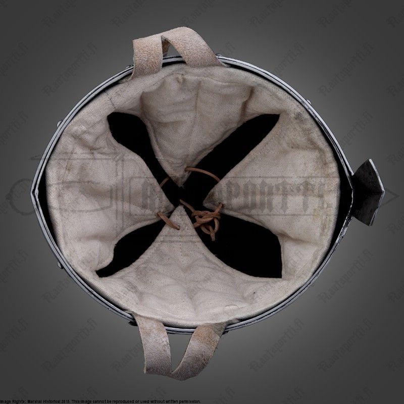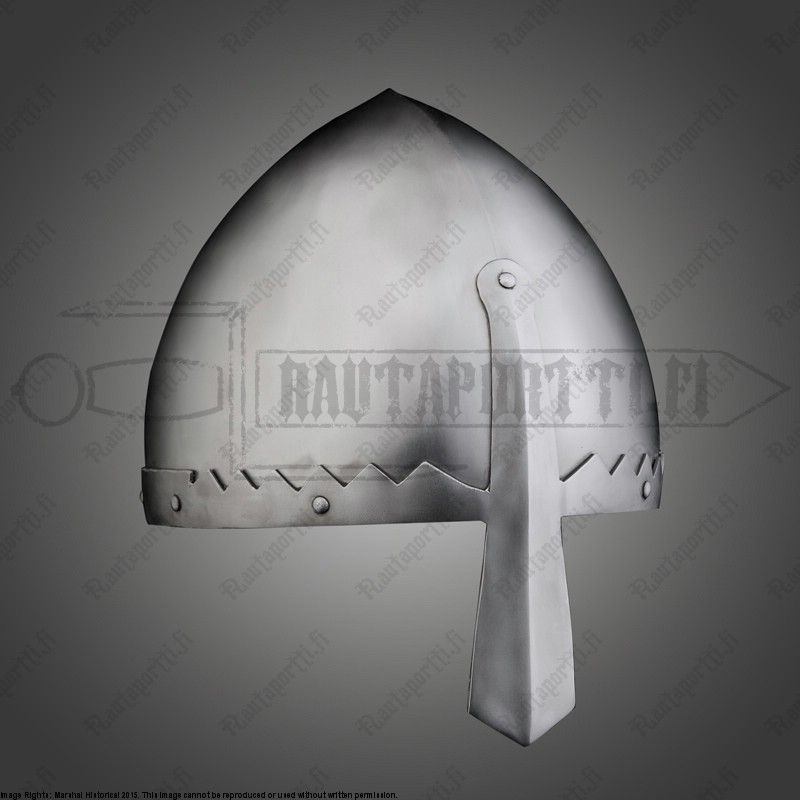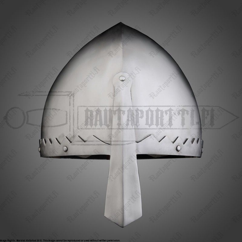 Even though the nasal is richly decorated on the original, we have decided to offer an unadorned version for your own customizations and deity-preferences. Without any doubt this is the perfect protection for the wealthy warrior from the 10th c. onwards. Made of 2mm steel. Steel thickness may vary due to the handcraft methods used on its manufacturing. Leather chin strap included.