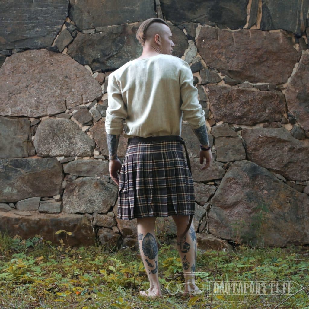 Kilts were originally large pieces of fabric pleated on the floor each time before being tied around the waist. We’ve made this attractive and comfortable kilt easier for you to put on by sewing in the pleats. You don’t have to know how to make good looking pleats with this easy to use kilt.