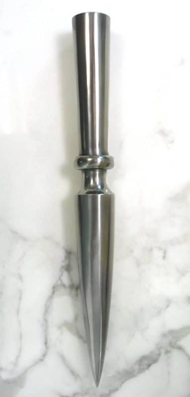 This Greek-style Butt Cap for spears protects the shaft and keeps it from splintering. It also gives balance to the spear. But, the Greek cleverly realized it could also be used as a secondary spearhead should the primary spearhead be broken in the heat of the battle. No Greek spear is complete without this butt cap. Ready to mount.