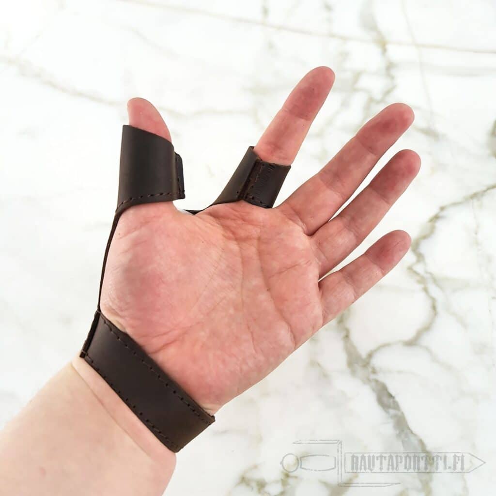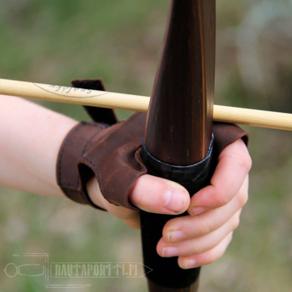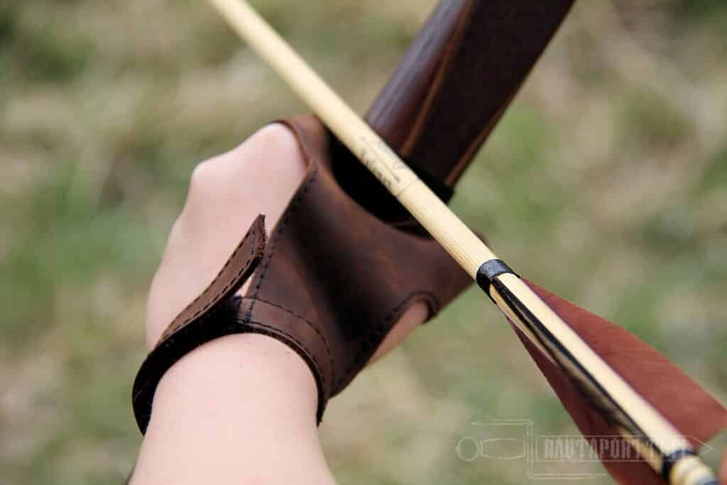 Protects the bow hand from arrow abrasions and scratches caused by fletching Gives a smooth point of contact for the arrow and thus improves accuracy slightly as each shot is repeatable Fastens with velcro around the wrist Made of high quality soft brown leather Available four sizes: S, M L and XL
