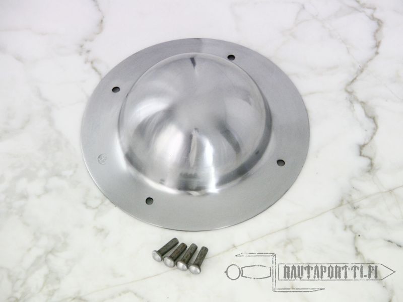 This sturdy battle-ready shield boss is made of 2 mm thick steel and is perfect for all DIY-projects. It is ideal when making your own shields, giving your shield authenticity as well as good protection to your shield-hand. The boss comes with four rivets for attaching to your shield. The length of the rivets approx. 20 mm.