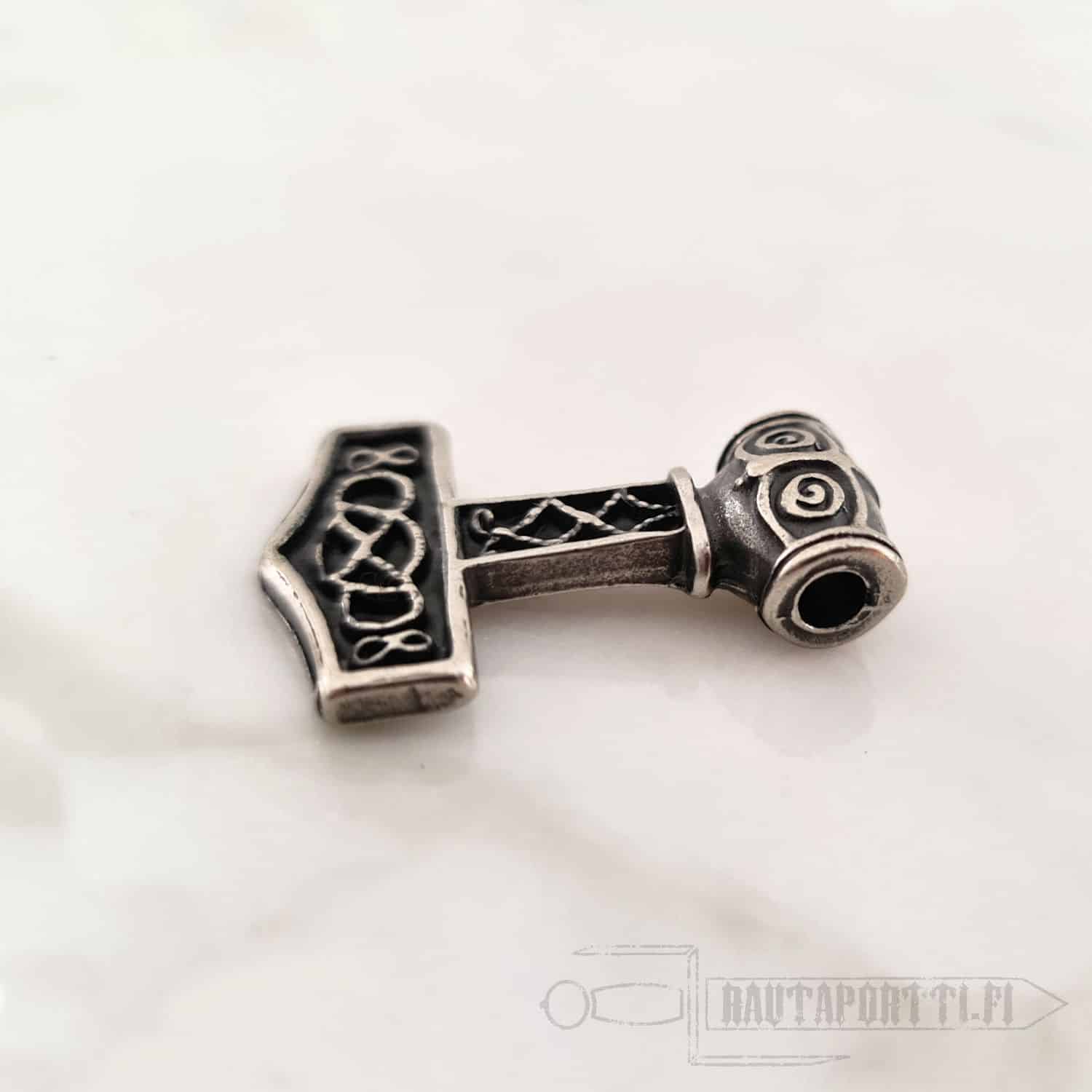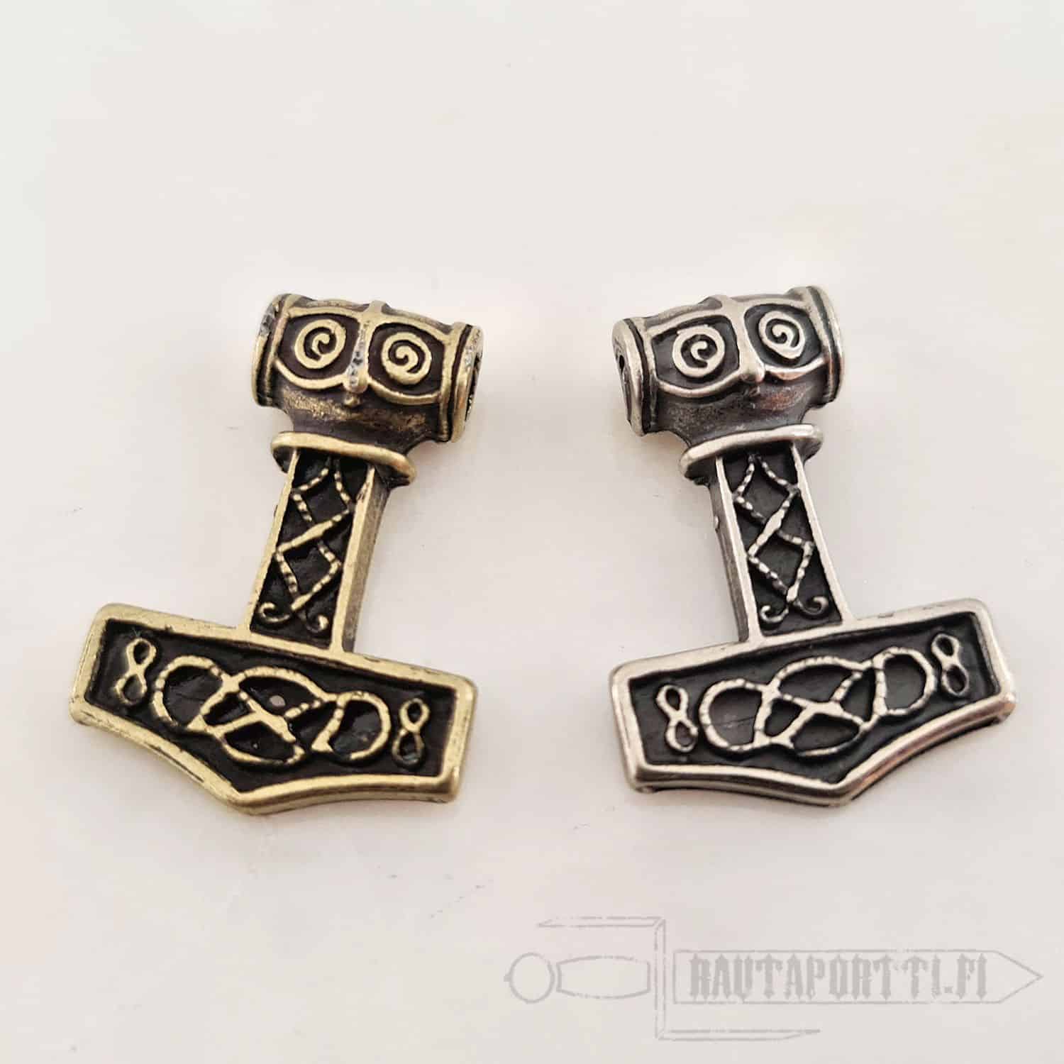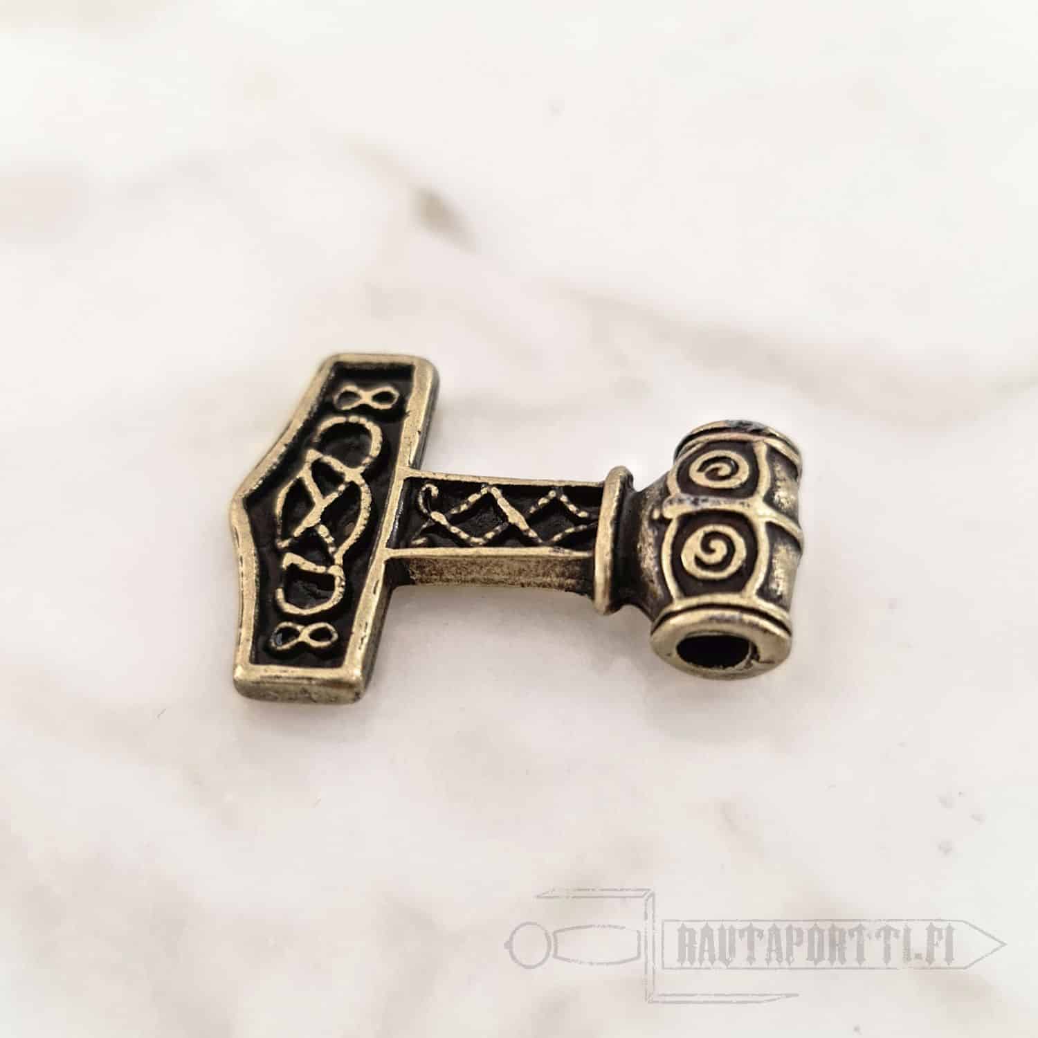 This specific hammer is based on multiple Viking era findings. It is made of zamak with bronze or silver color.