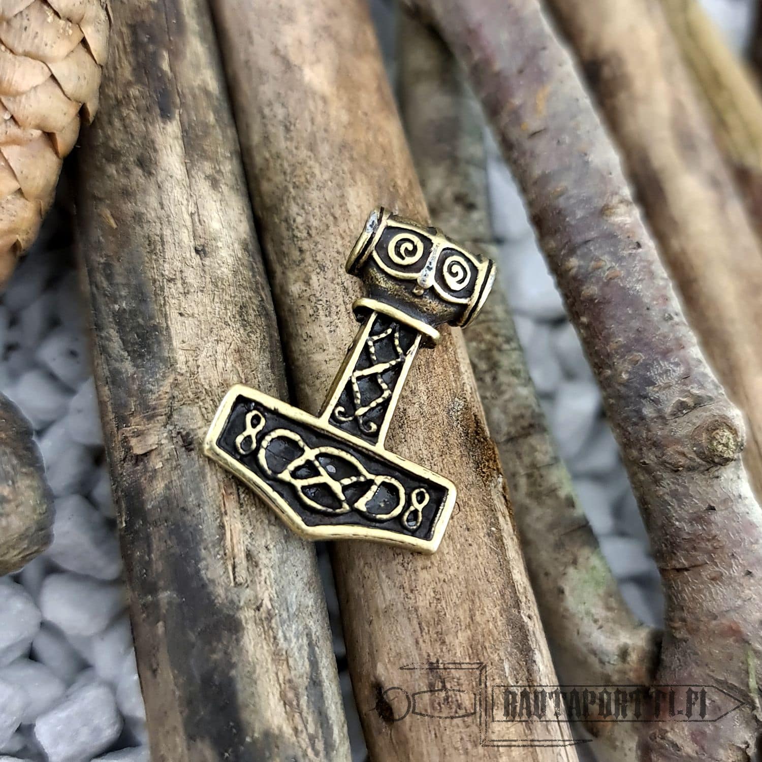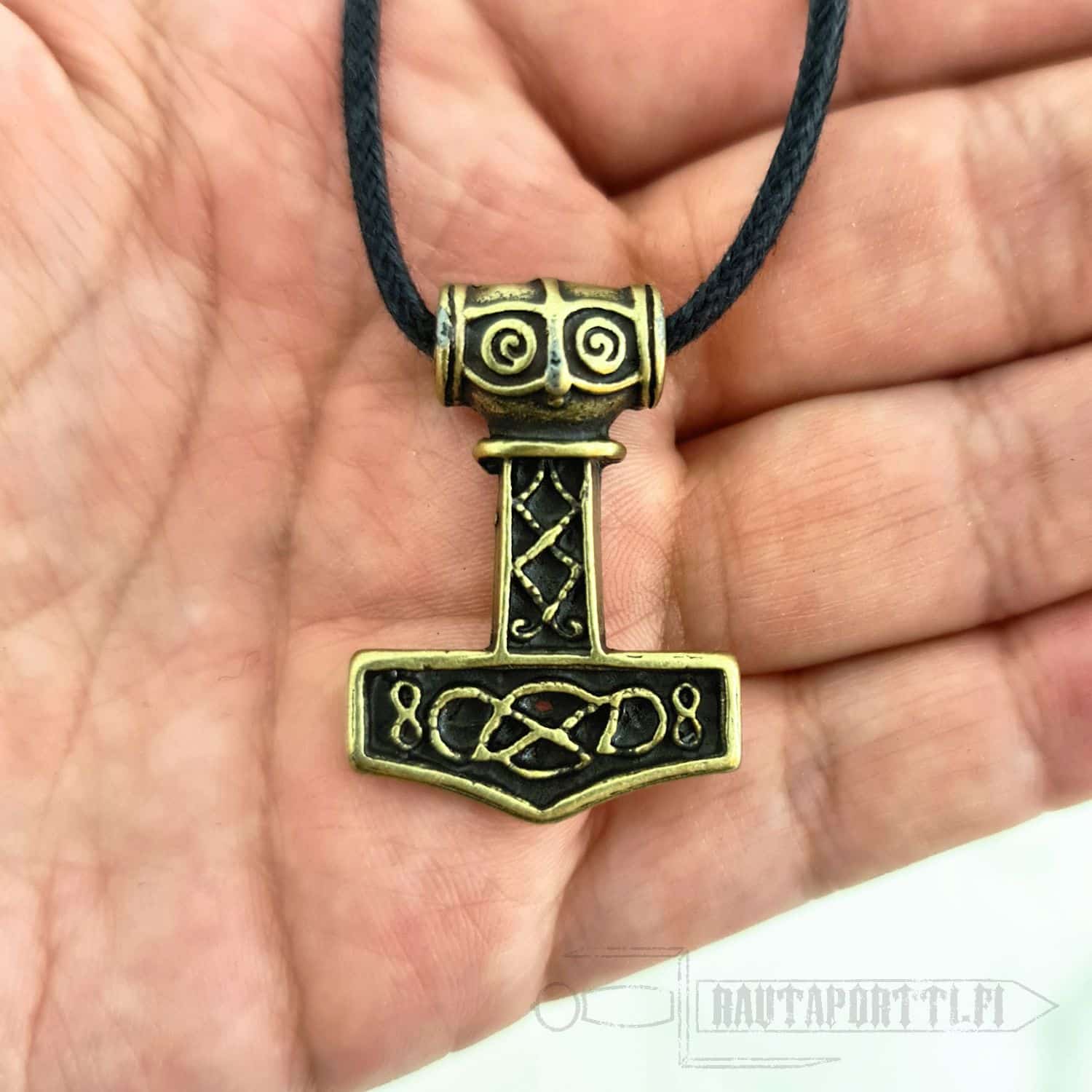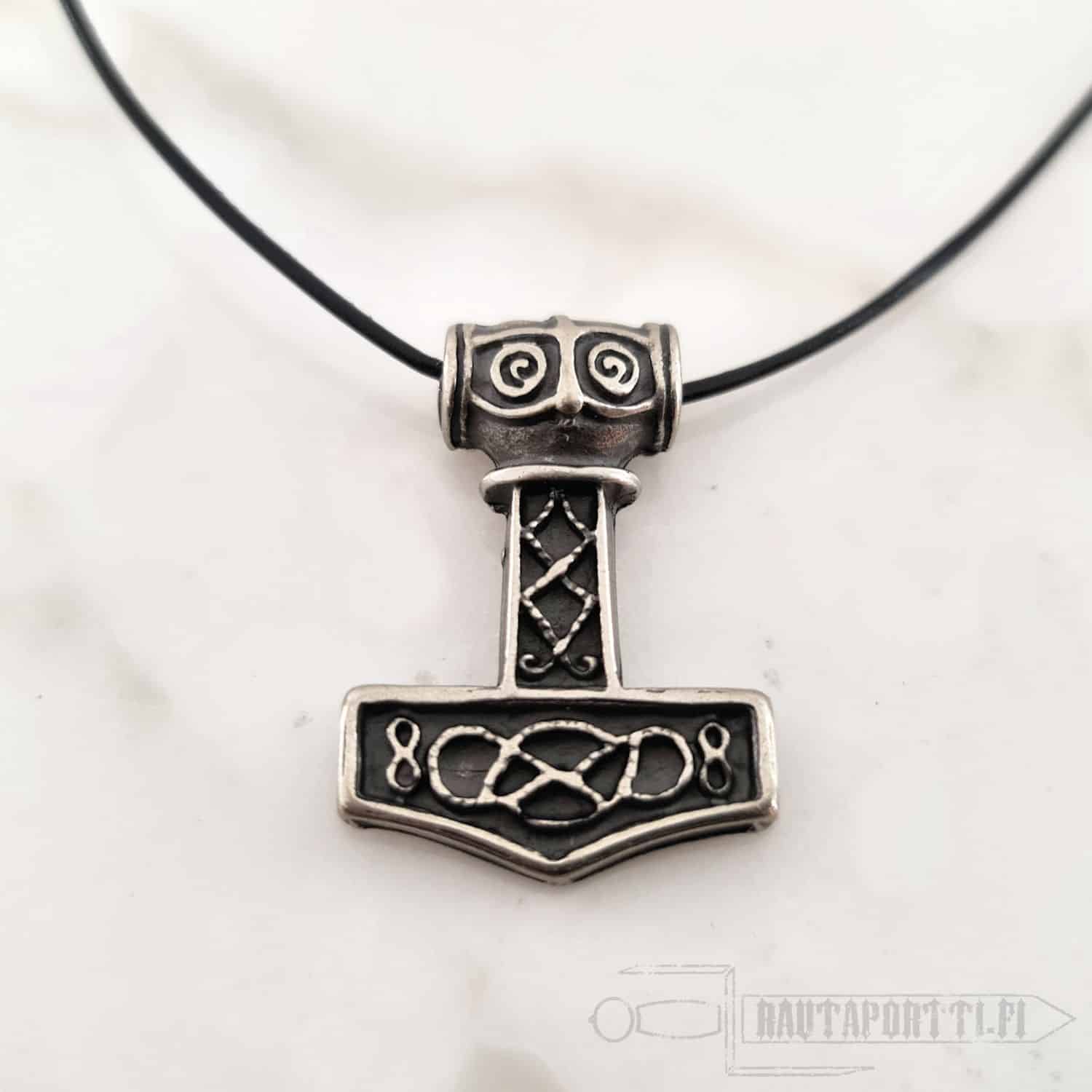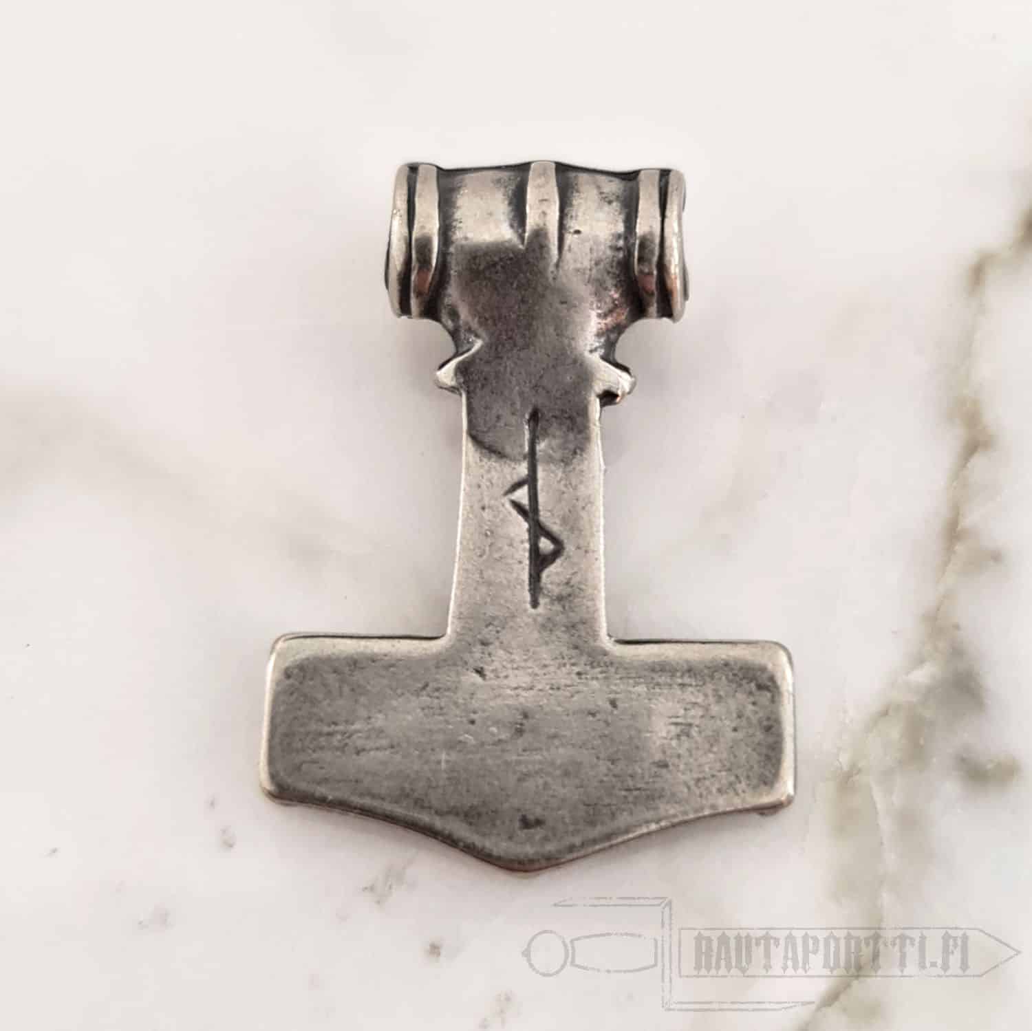 This specific hammer is based on multiple Viking era findings. It is made of zamak with bronze or silver color.