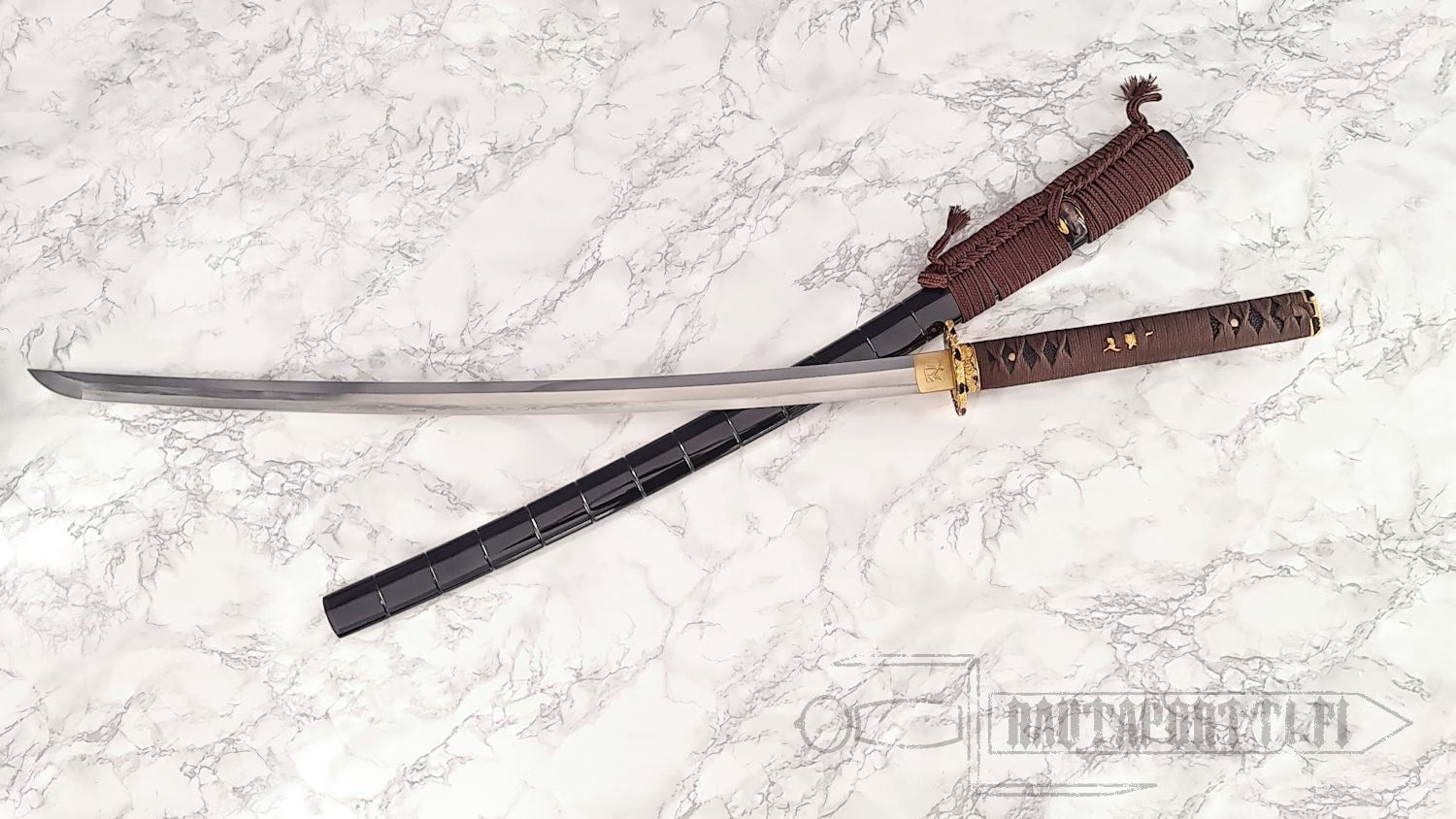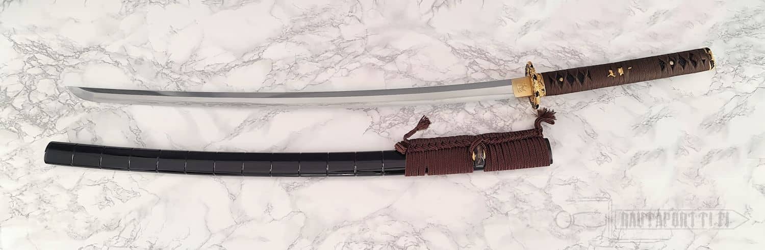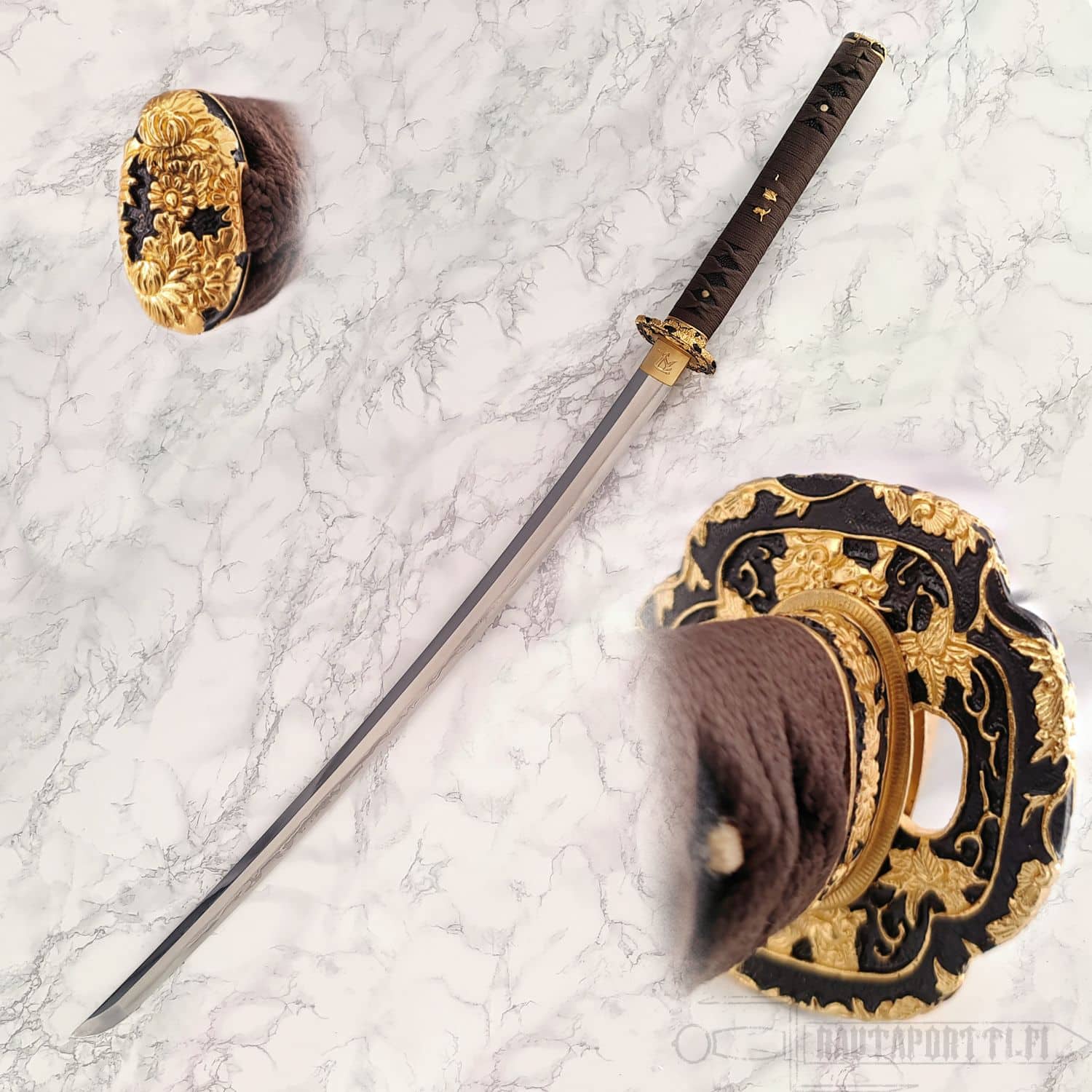 Best katana money can buy with every small detail perfected Differentially hardened tamahagane steel blade Tamahagane is the most authentic and traditional katana material already made and used in Japan 1400 years ago Tamahagane is very expensive and hard to make, making the sword expensive Tsuba, fuchi and kashira made of blackened copper with 24K gold plated details Premium grade silk wrapping and genuine rayskin on the handle Comes with embroidered silk sword bag, wooden box and certificate of authenticity Lacquered hardwood scabbard with premium grade silk wrapping Overall length 103 cm Weight without scabbard/saya 1 190 g