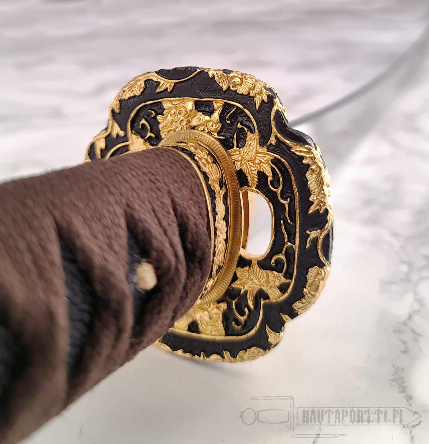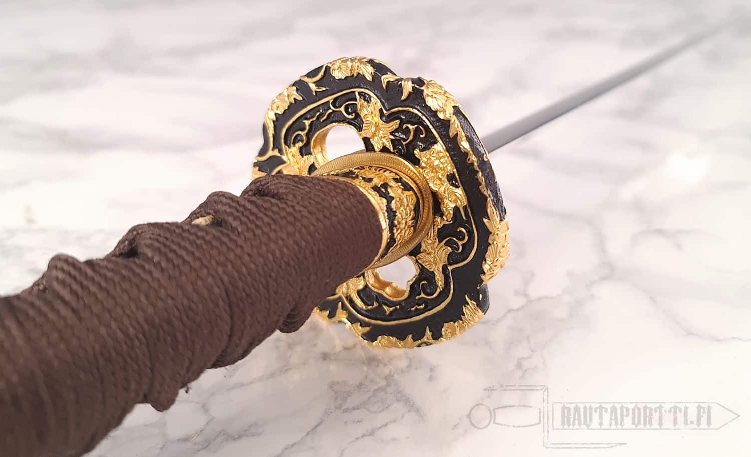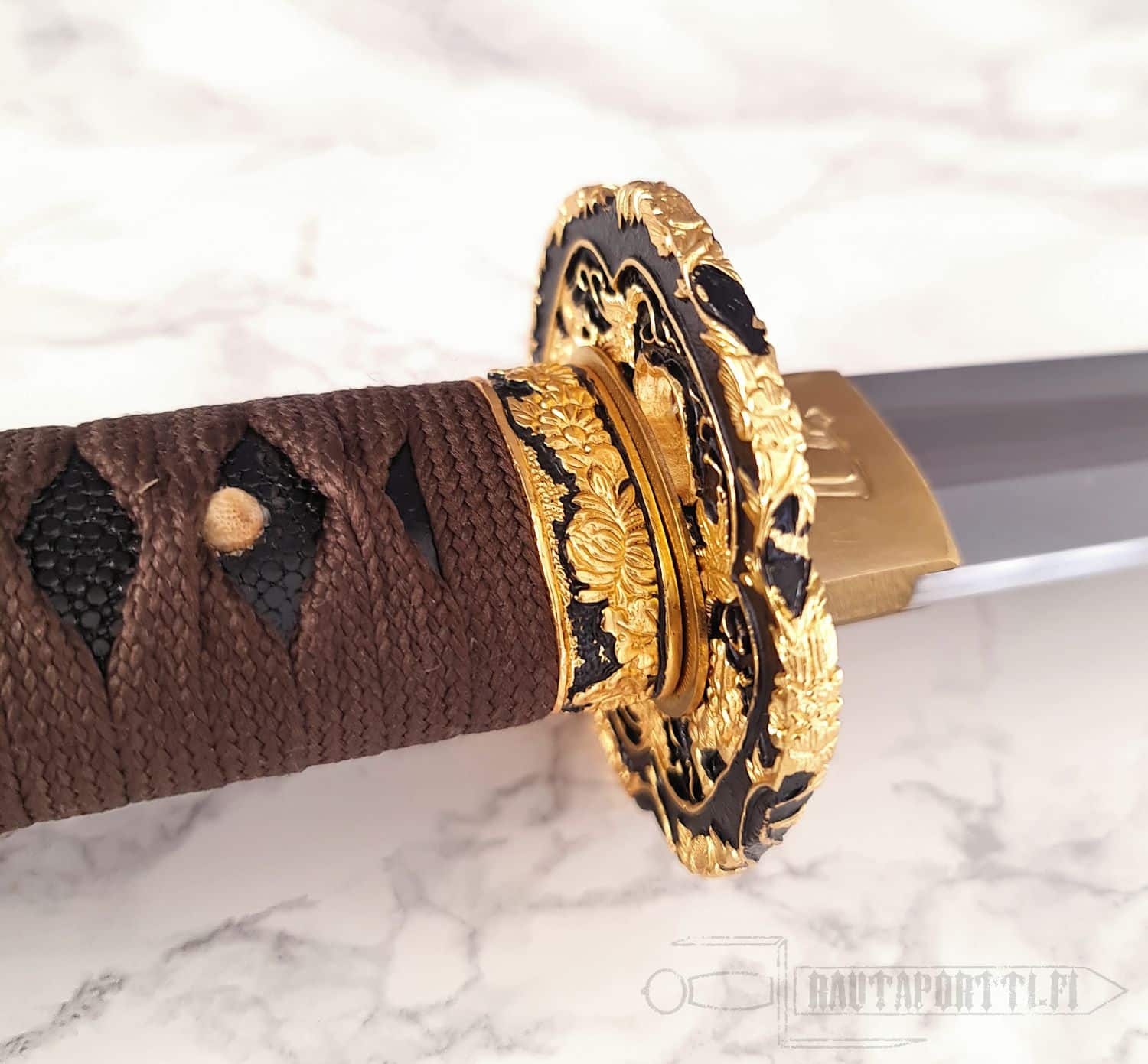 • Guard/Tsuba material: Blackened copper with 24K gold plated details