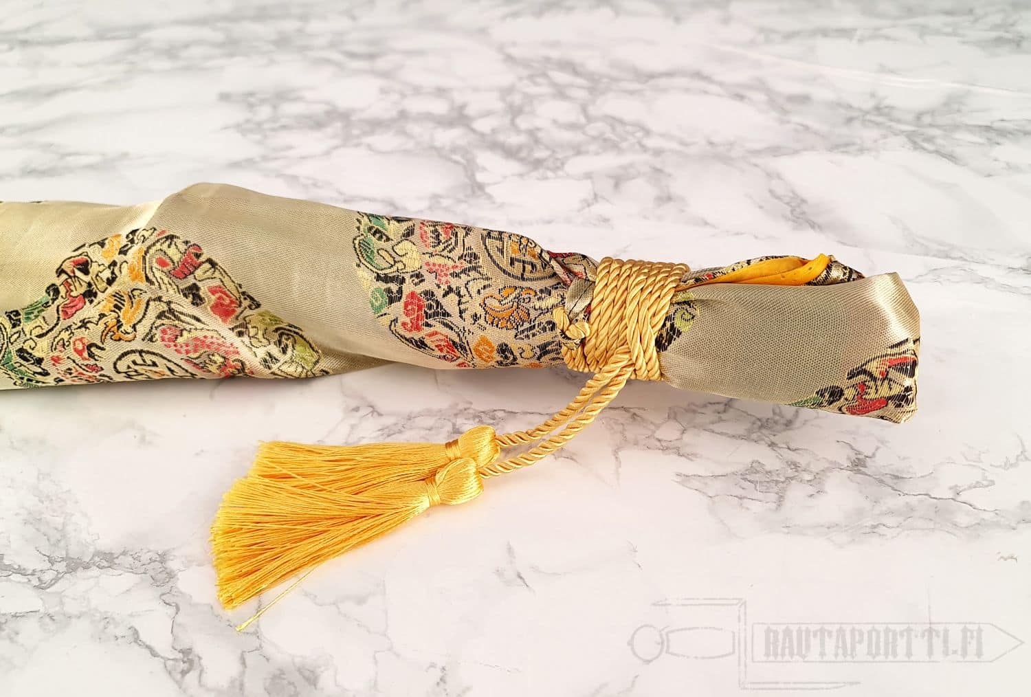 • Scabbard/Saya material: Hardwood – Buffalo horn – Premium grade silk