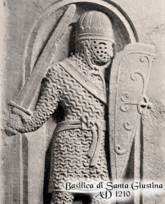 • An example of this type of helm with a pierced facemask can be seen on a stonecarving in the church of St. Justina in Padua, Italy