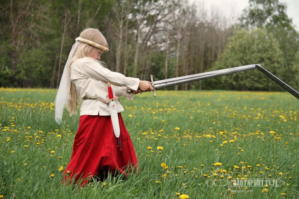 - Same size as some medieval bastard-sword originals. Suits well to adults also and works as a large 2-handed sword for kids.
