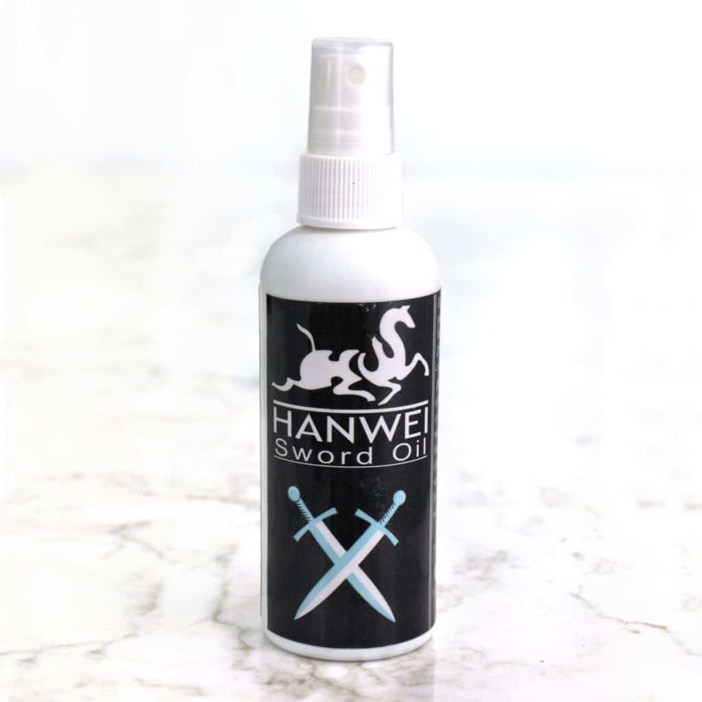 Hanwei Sword Oil is specially formulated to provide corrosion protection for high-carbon steel blades and other edged weapons. It is ideal for covering exposed metal guards and wire-wrapped grips, and various scabbard components.