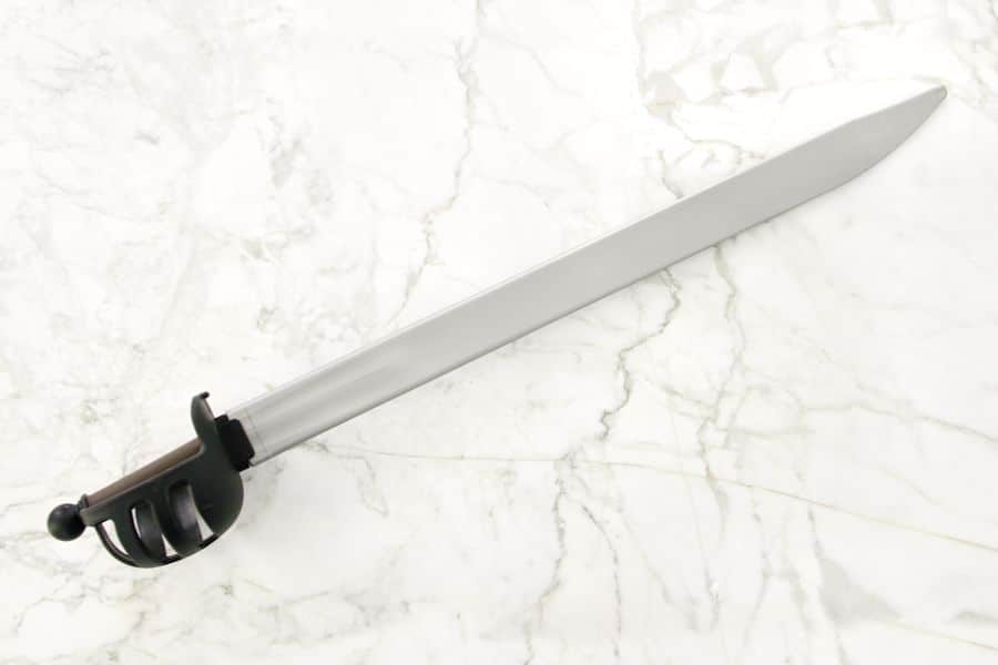 Cutlass is short, broad and typically slightly curved sword commonly used on ships from the 15th all the way to the 19th Century. Although used on land as well, the cutlass was perfect for naval combat in tight quarters. The basket itself provided excellent hand protection and could deliver a hard blow in the crowded melee that ensued on board.