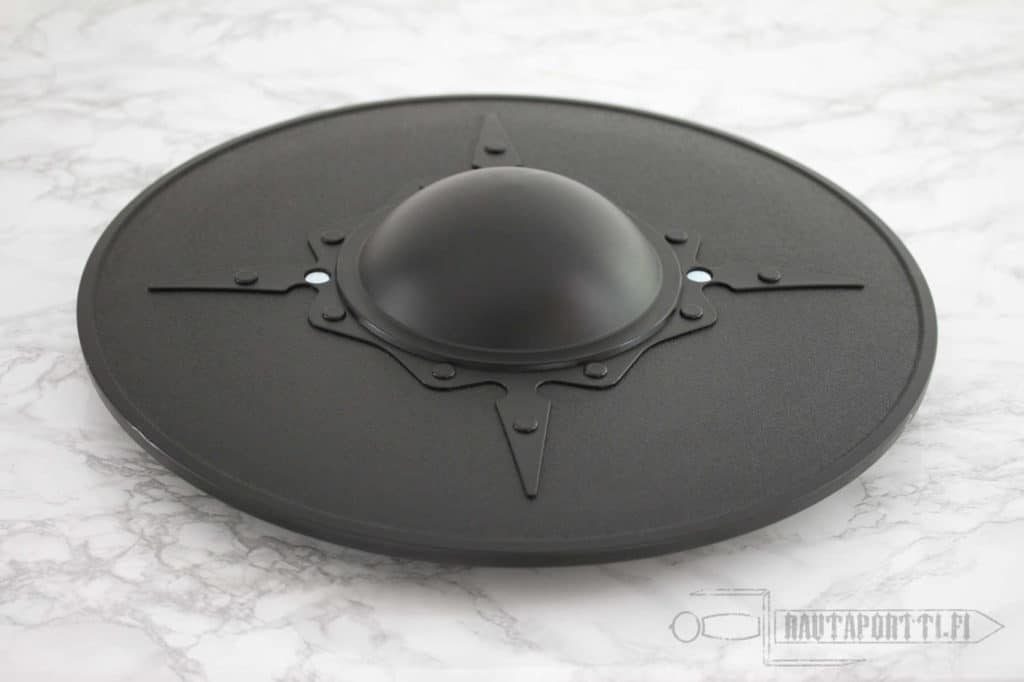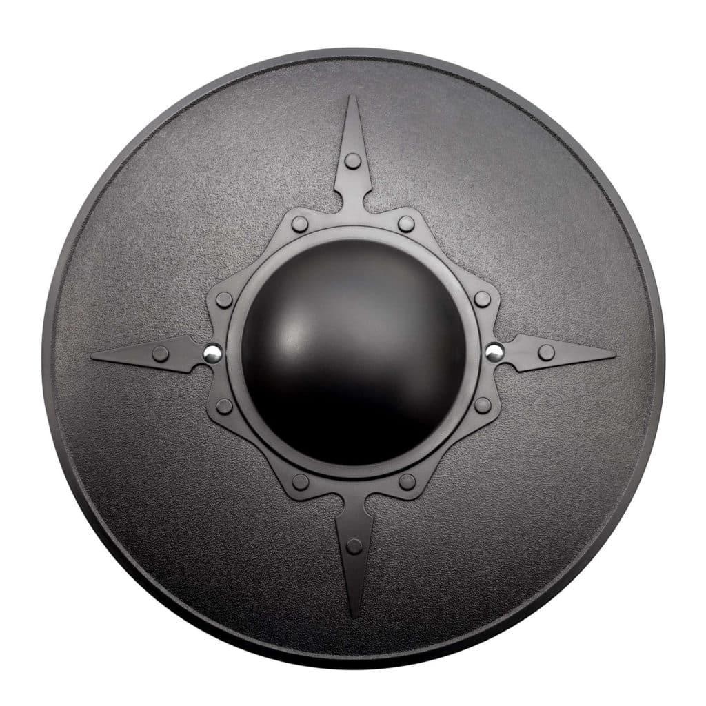 Stout and reliable shield for rugged use Material: Polypropylene Weight: approx. 2 100 g Diameter: approx. 48.3 cm Intended to be used with non-steel training weapons. Can be used with metal weapons only in light sparring.