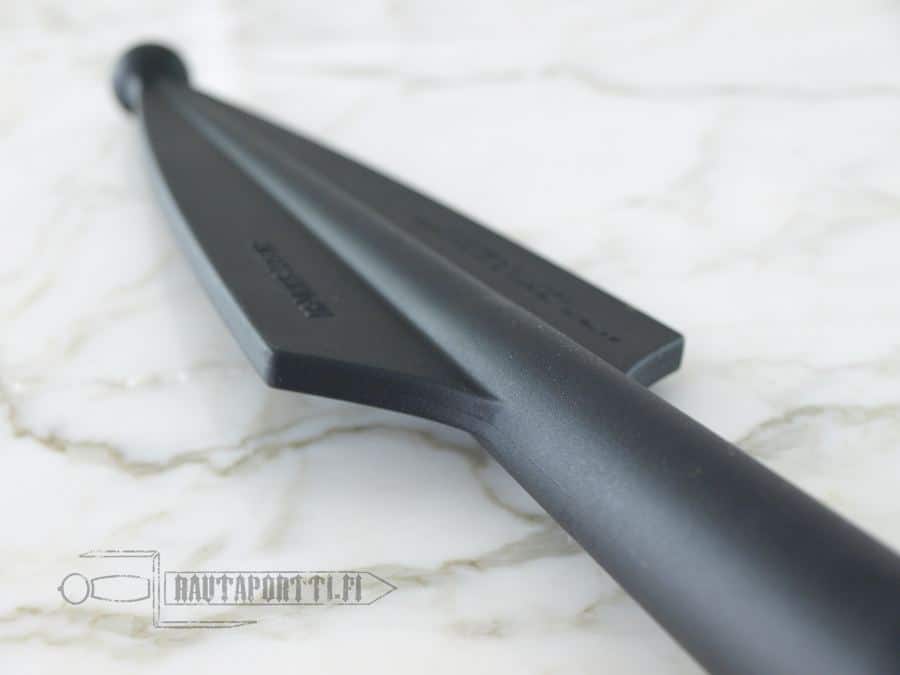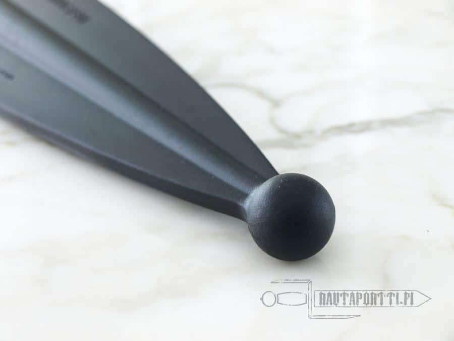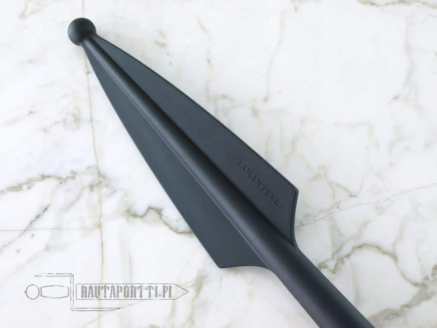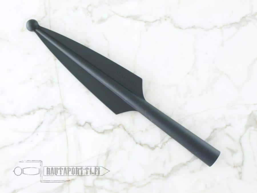 Practice makes perfect. Before reaching levels of excellence, however, that practice should be conducted in relative safety. That is now possible with this synthetic training spear head. Practice weapons of all kinds always have to balance realism with safety. If the weapon is too realistic it will function like the real weapon and there is a risk of serious and unnecessary injury. If the weapon however is too soft and bendy, it will be useless as a training tool as it will move and act differently from the real deal. The material used in this synthetic weapon is Santoprene, which combines the best qualities of rubber and polypropylene.