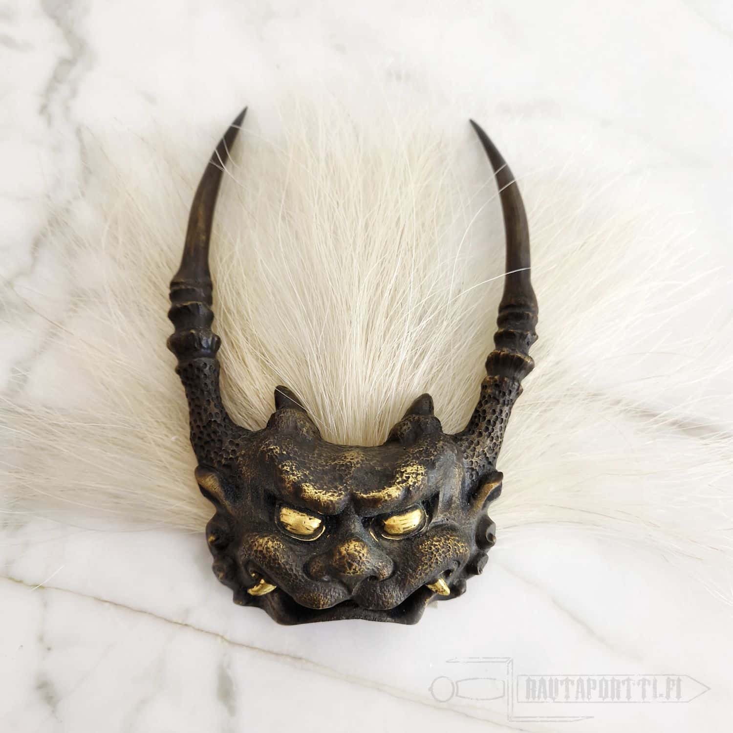 - Horned Oni demon made of solid brass is removable
