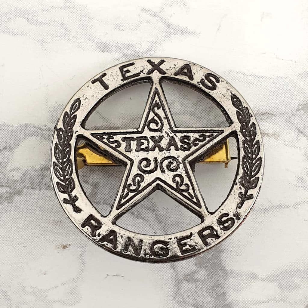 The wearing of badges became more common in the late 1800s, as many felt a shiny badge was too tempting a target, and there was no real need to show a badge to a hostile Native American or to an outlaw. A Ranger’s pay was so meager that the money required for a fancy badge was rarely available. The first badges were locally made and varied considerably, but they invariably represented a Lone Star cut from a Mexican five-peso silver coin.