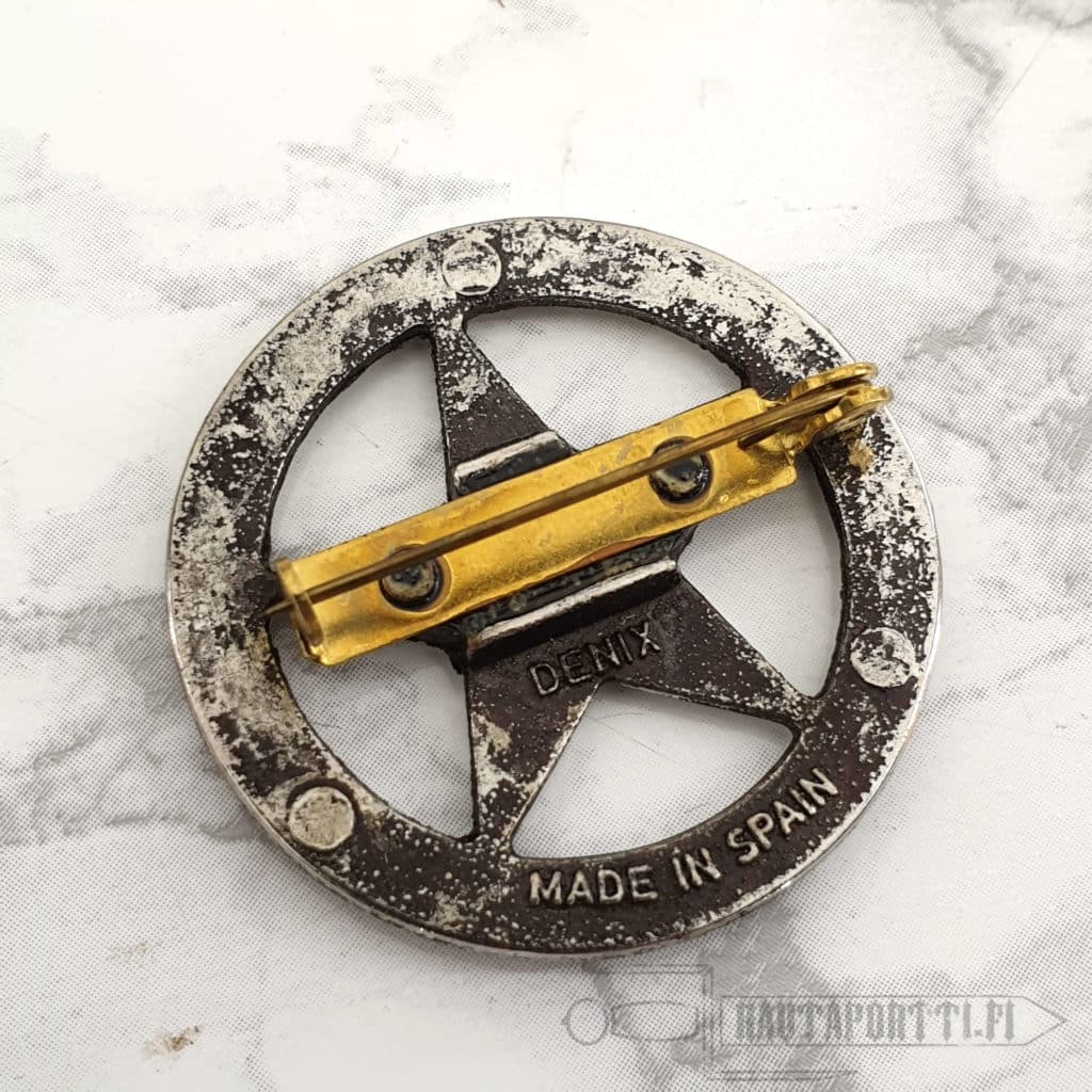 Reproduction badge made of cast metal Has a needle for attachment Excellent for theater and film productions, for collectors of historical memorabilia, and as decoration
