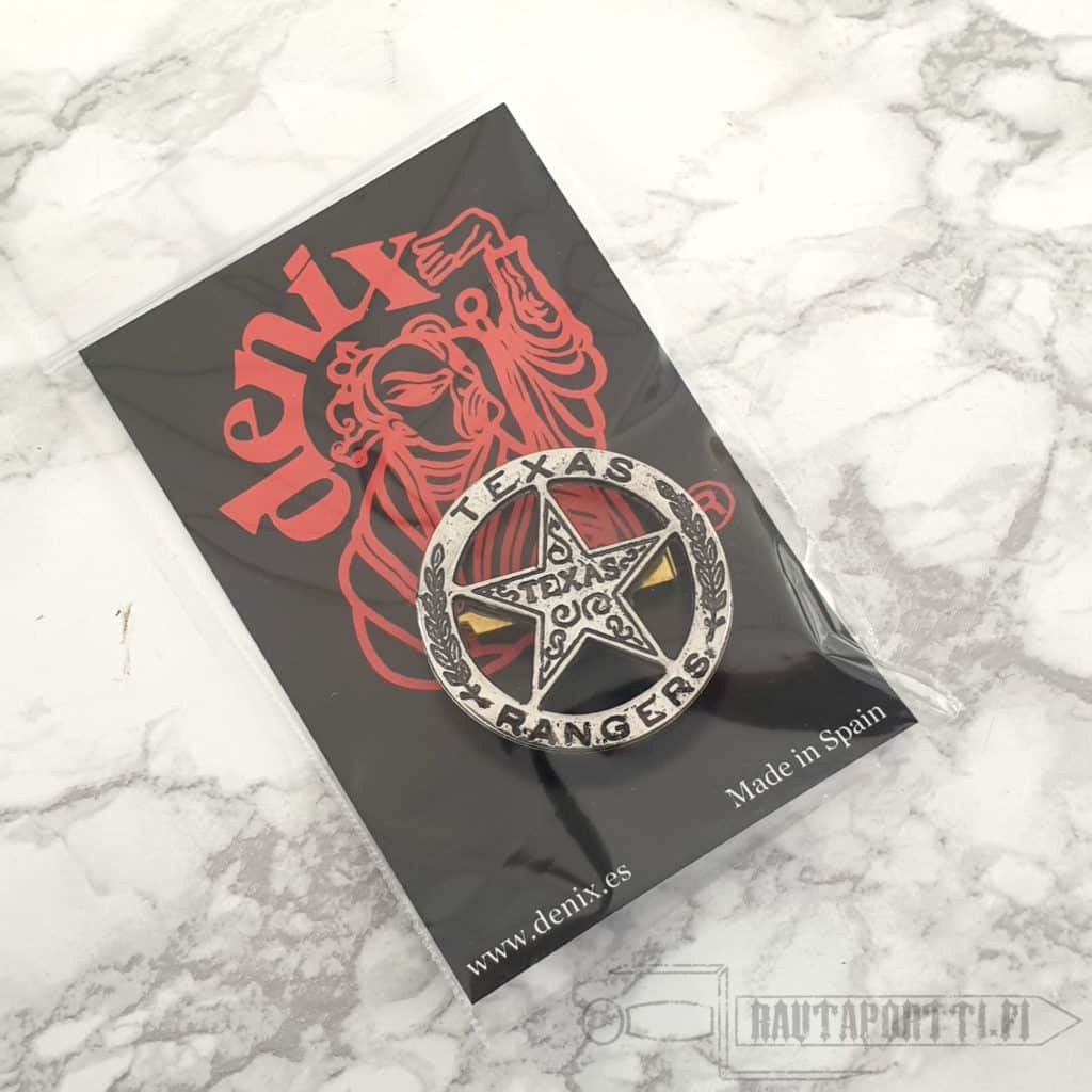 Texas Ranger badge made of metal, with a needle for fastening.