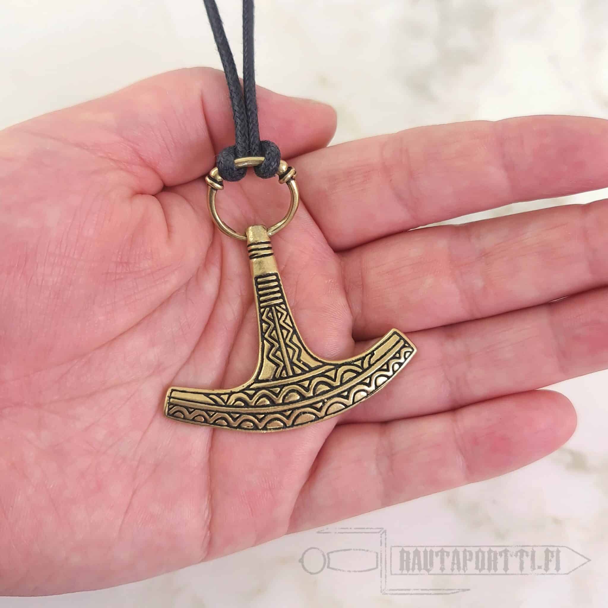 Unlike the West Scandinavians, the Finnish tribes of the Iron Age did not carry Thor’s hammer. Instead, they had a very similarly shaped amulet, the so-called “Ukonvasara” (also sometimes called “Ukonkirves”), the magical weapon of the Finnish thunder god Ukko.