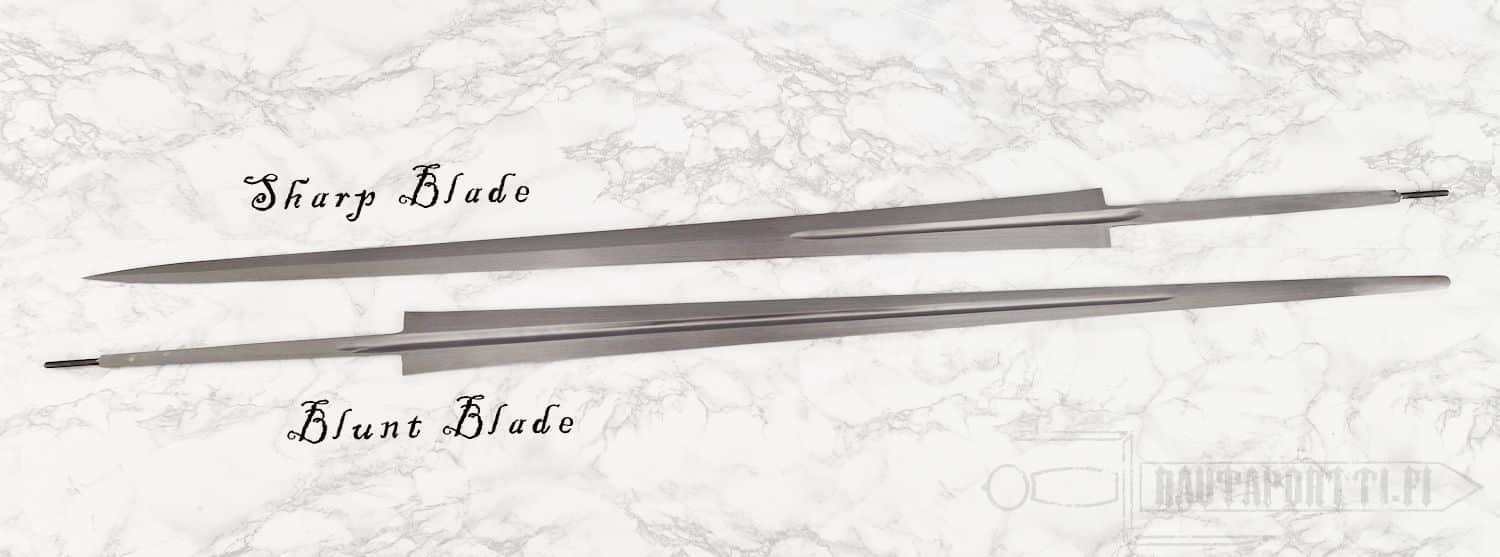 These replacement longsword blades are made for the Tinker Longsword, and do not come with guard, hilt or pommel parts. The blunt longsword sparring blade may be used either to replace a severely worn sparring blade, or to convert a sharp longsword to a sparring format. The sharp replacement blade will enable owners of the blunt Tinker Longsword to convert their sword to a cutting sword quickly and easily. Both versions can of course also be used as a basis for building your own sword. After all fashioning your own guard, hilt and pommel may be more manageable to start with, than forging your own blade.