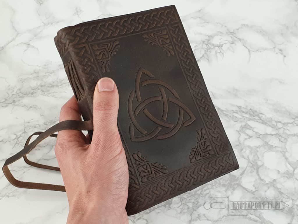 This journal has thick embossed leather covers and inside you can find approx. 240 empty handmade paper pages waiting for your notes, drawings, spells, thoughts, travel plans, or whatever you fancy. You can use this book for example as a diary, for customer orders, drawings, as a gardeners notebook, travel book, guest book (also why not as a quest book) or as a book for your own family tree, recipe book and so on.