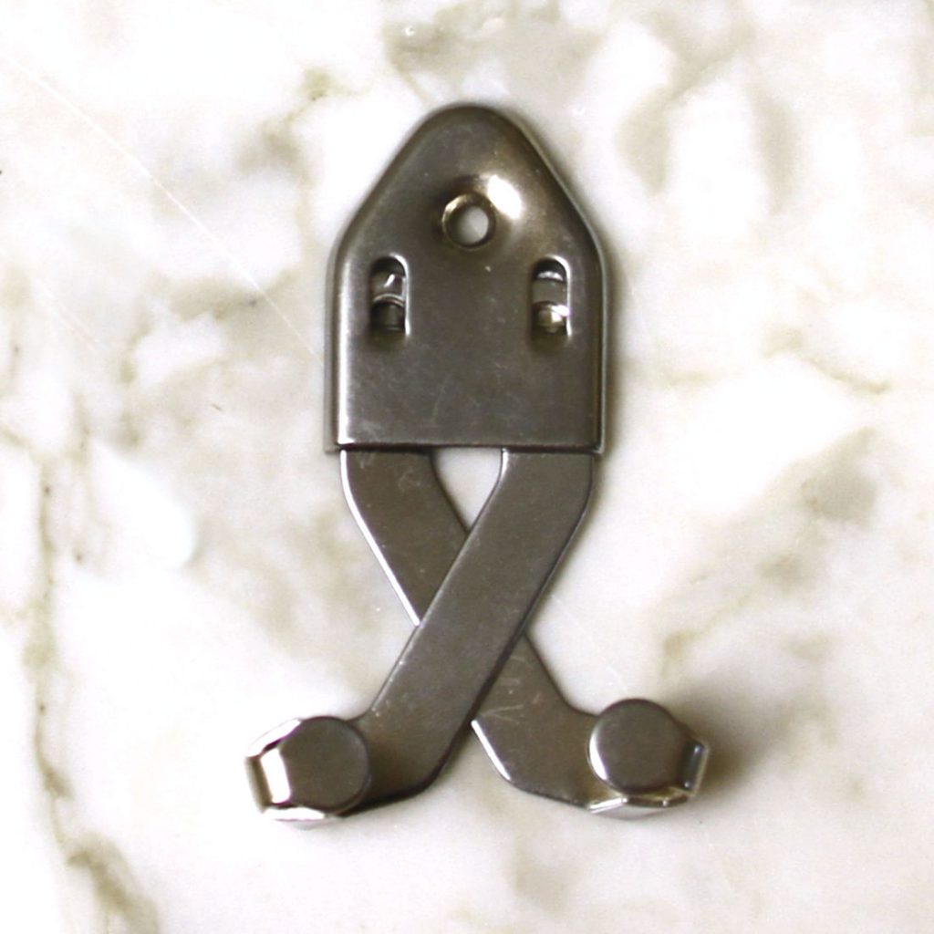 The perfect display option for most of our swords and daggers with wide blades, this sword hanger is made from polished steel and has an adjustable bracket. On the top is a hole for a nail or screw. Once you hang the sword, the hanger practically disappears, taking nothing away from your beautifully edged weapon collection.