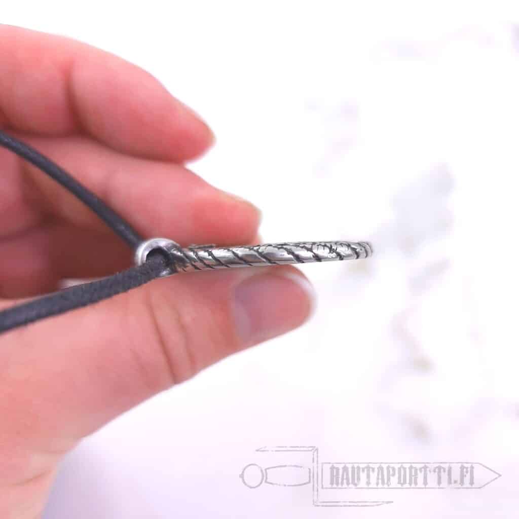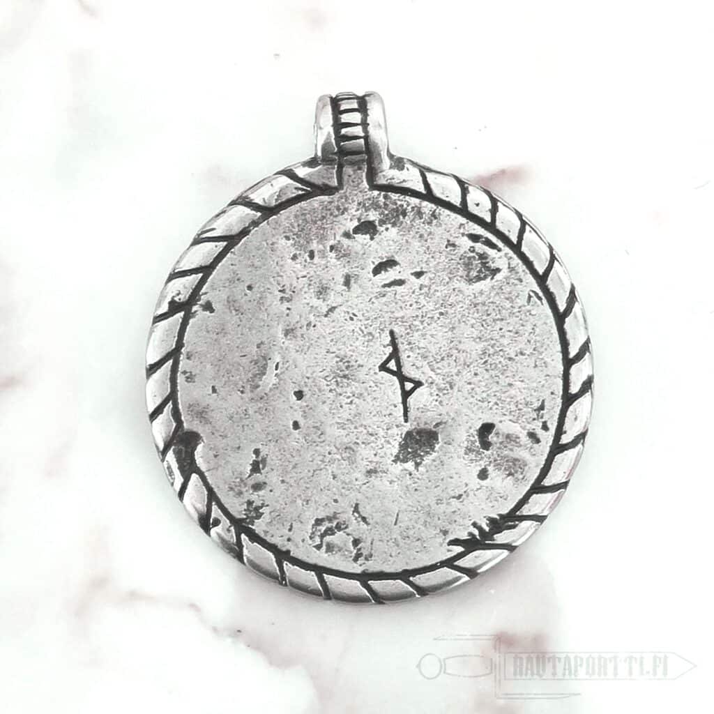 The Vadstena Bracteate is made of zamak in silver color. It can be worn as a perfect accessory for historical reenactment of the Iron- and Viking Ages, LARP costumes or as everyday jewelry.