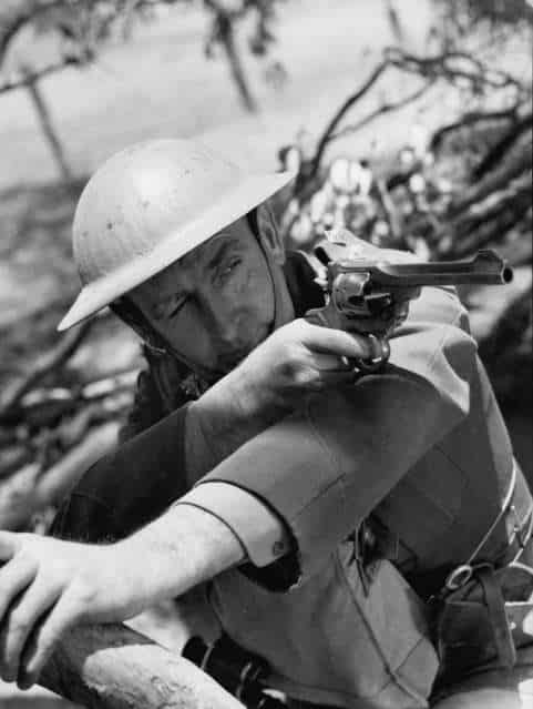 The official service pistol for the British military during the Second World War was the Enfield No. 2 Mk I .38/200 calibre revolver, essentially a copy of the Webley MK IV .38/200. Owing to a critical shortage of handguns, a number of other weapons were also adopted. As a result, both the Webley Mk IV in .38/200 and in .455 calibre were issued to personnel during the war. The Webley Mk IV .38 revolver was not completely replaced by the Browning Hi-Power until 1963, and saw use for example in the Korean War and the Suez Crisis. One factor in keeping them in service for that long was their habitual shortage of ammunition; as they had so little ammunition available, they did not wear out from use.