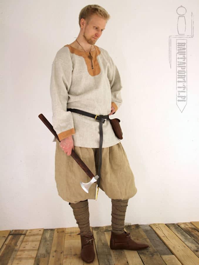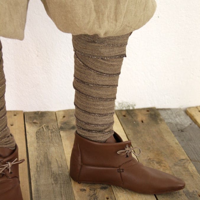 Throughout the ages legs have had a need for some protection from the weather and from the nature. Pants are naturally the go-to solution today but leg wrappings have been used through the ages in addition or instead of pants. The leg bindings/wrappings kept the trousers clean, dry and in good shape and naturally also gave the lower leg some additional protection both when walking in the wild as in combat. Even small cuts and scrapes could be fatal if infected so any protection from nettles, thistles, branches and any scratches came in handy. In addition to protection leg windings acted like a good pair of socks giving warmth during the cold seasons.