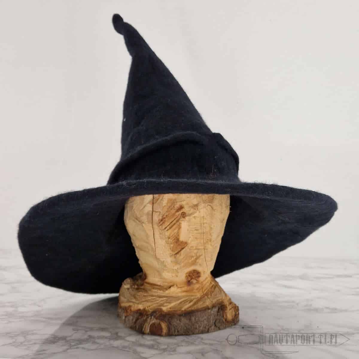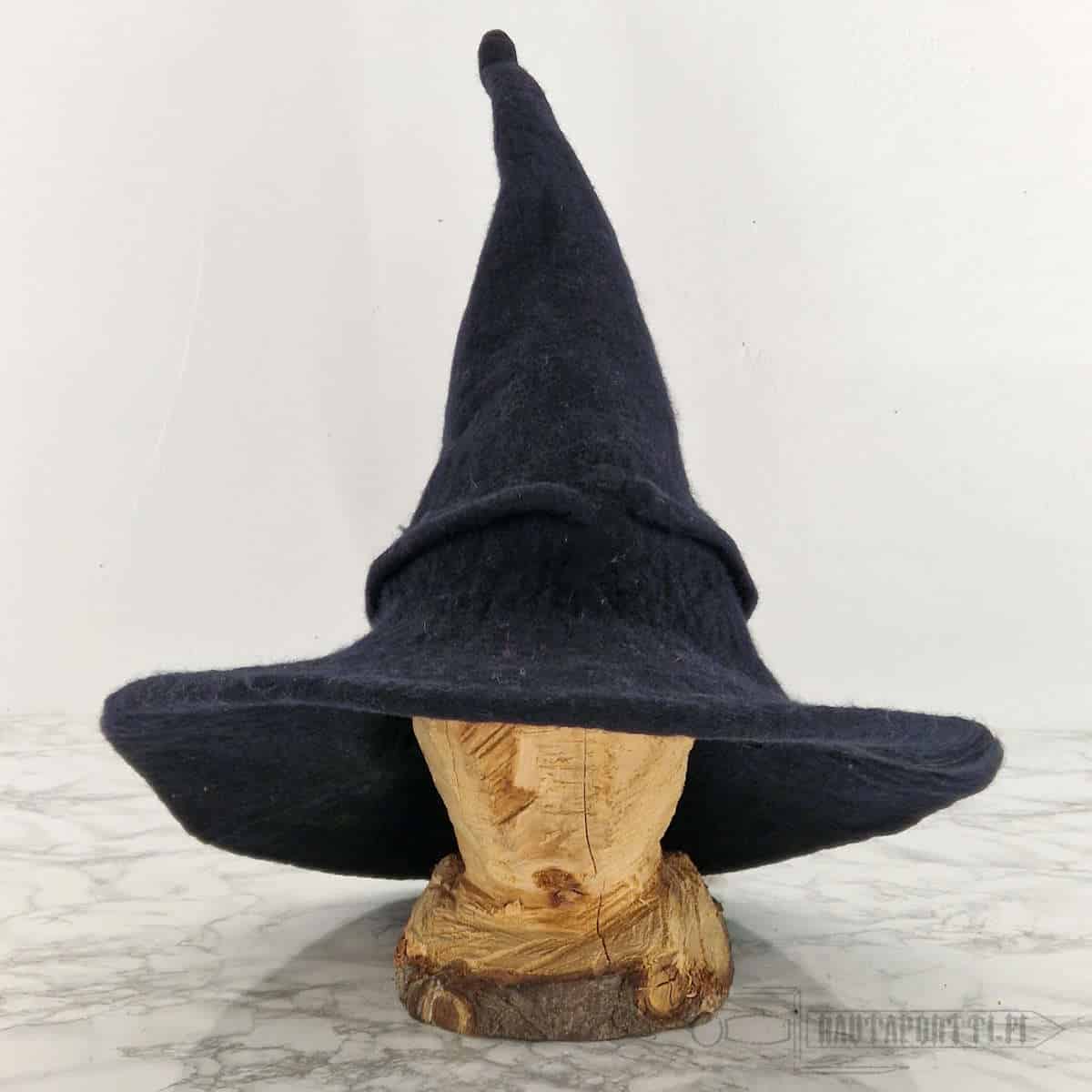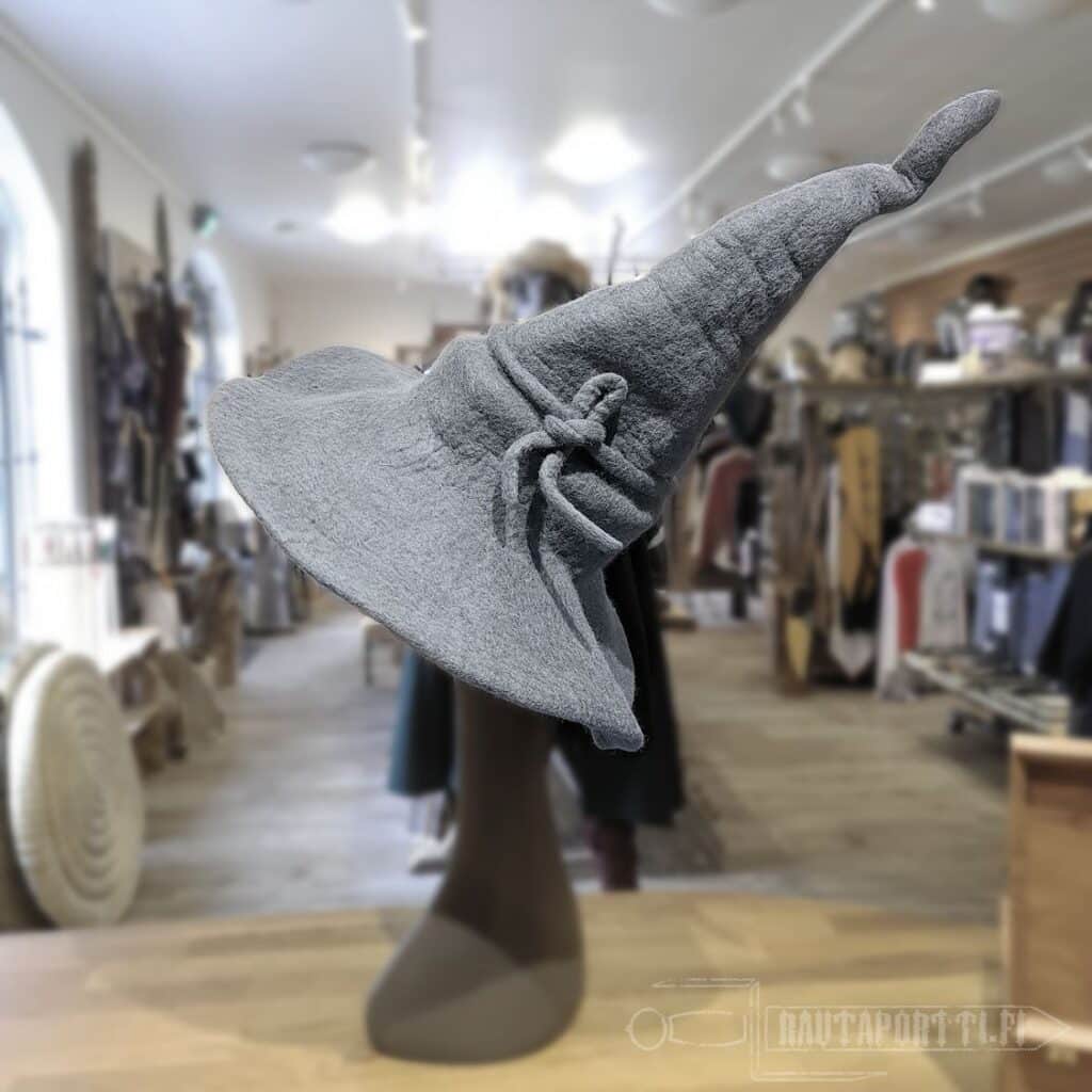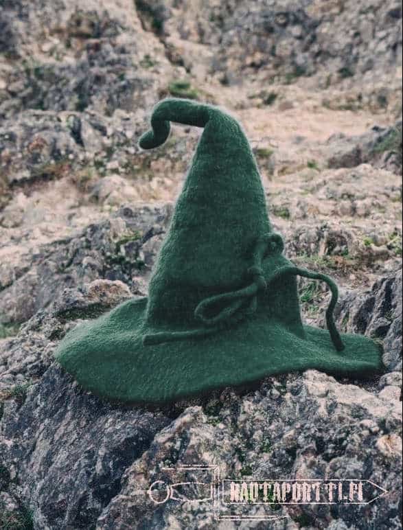 High quality hat for a witch or a wizard. Made of felted 100% wool that keeps the shape well. Flexible and soft wool insulates well and even keeps rain out of your hair, if for example Saruman sends some storms your way to interrupt your adventures. Wool naturally repels dirt and is therefore easy to clean.