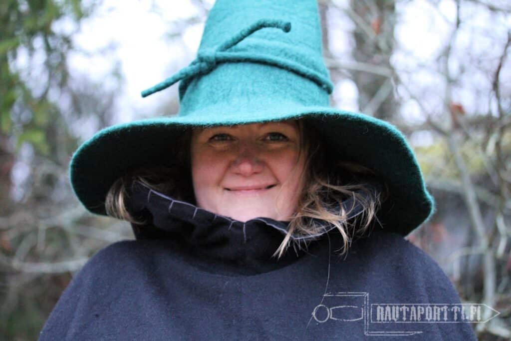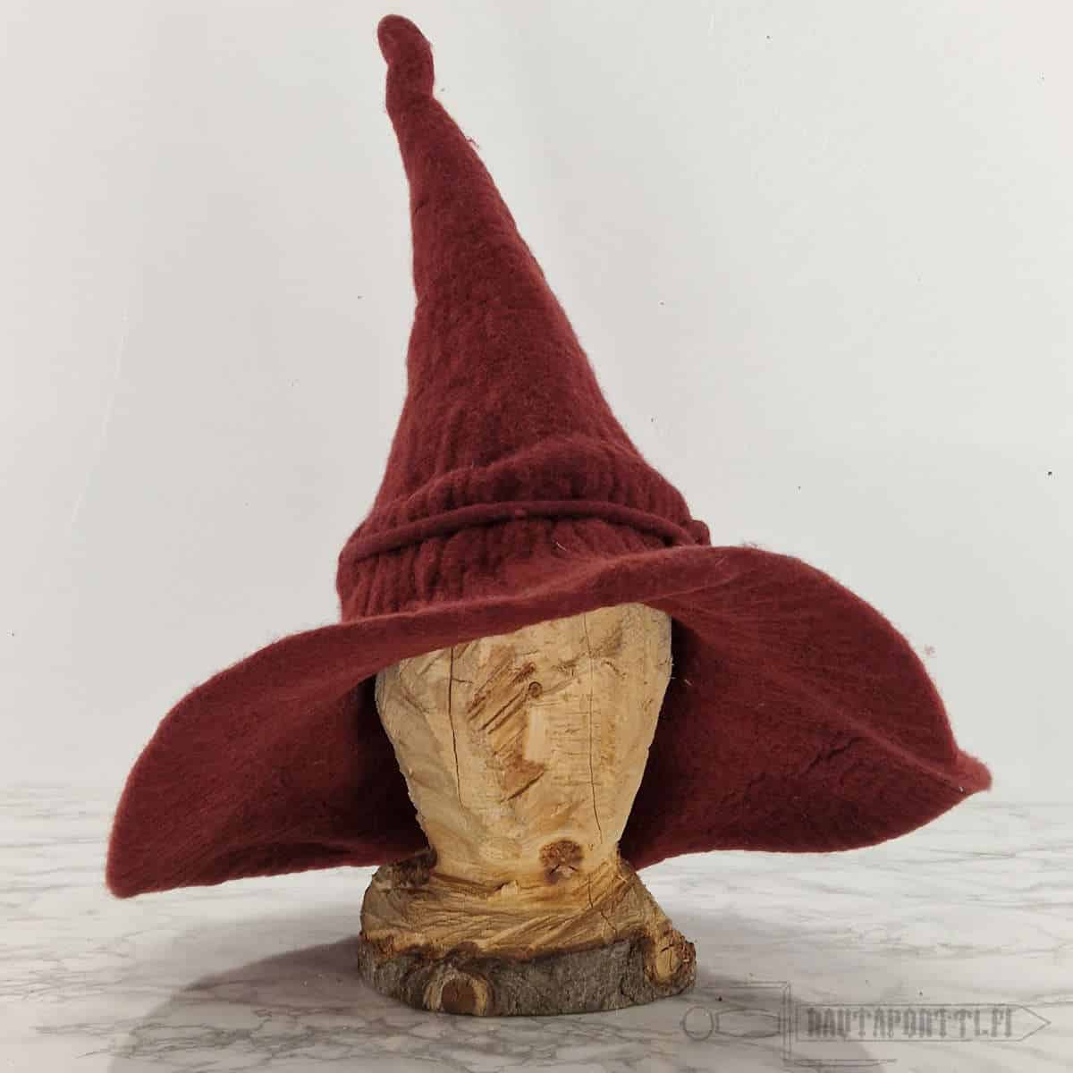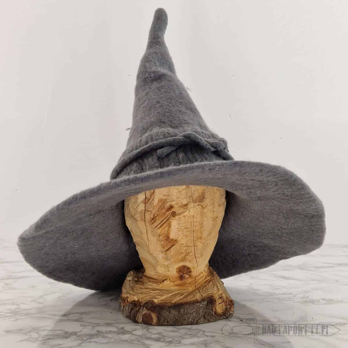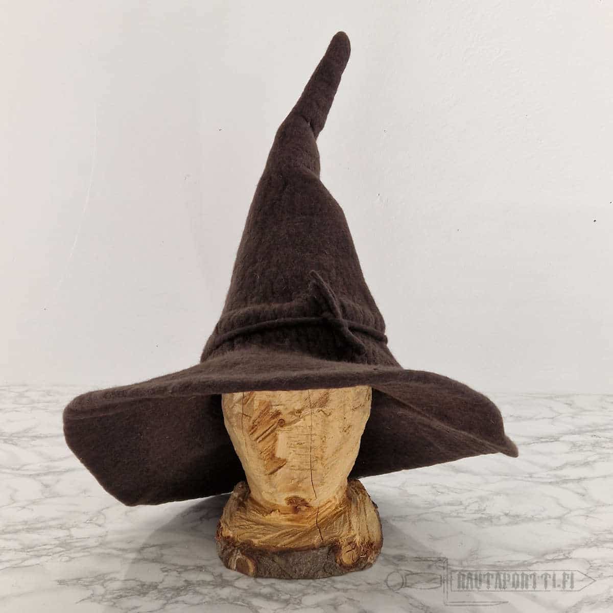 High quality hat for a witch or a wizard. Made of felted 100% wool that keeps the shape well. Flexible and soft wool insulates well and even keeps rain out of your hair, if for example Saruman sends some storms your way to interrupt your adventures. Wool naturally repels dirt and is therefore easy to clean.