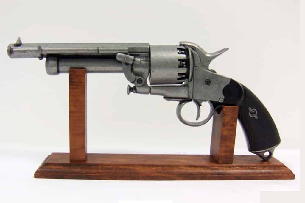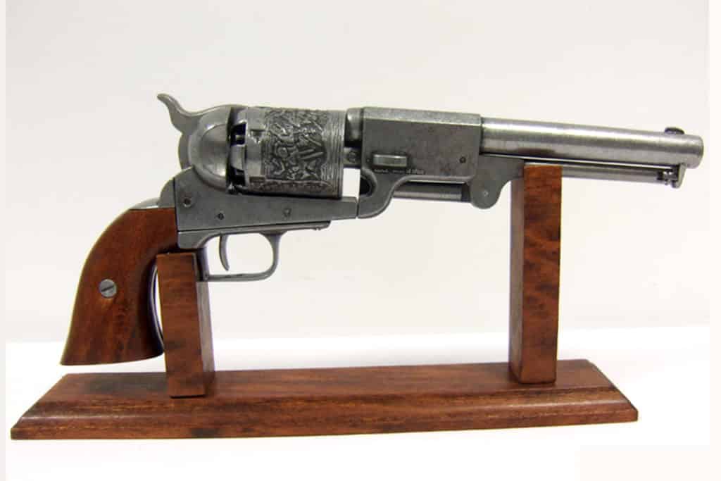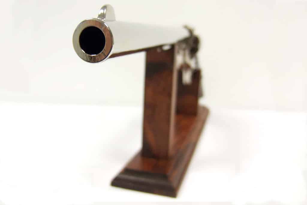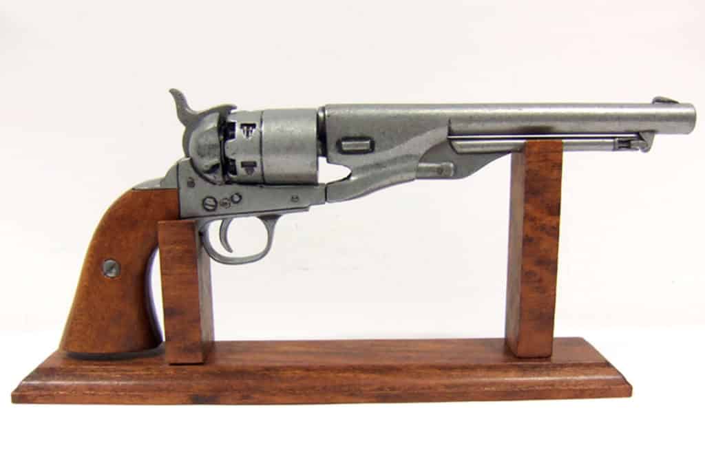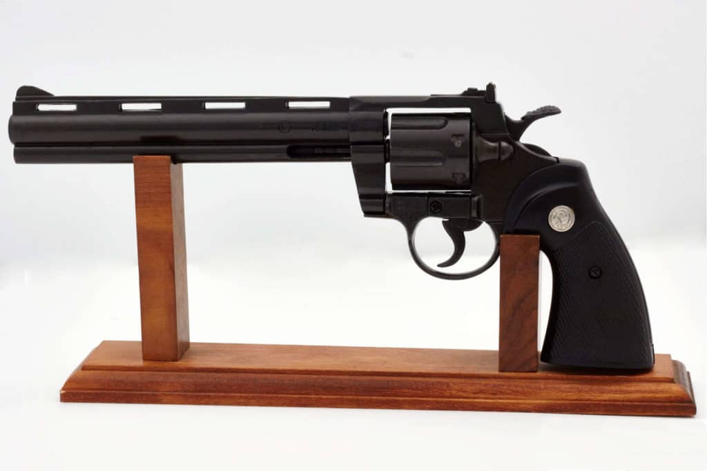 Balancing some weapons for display is tricky. This wooden stand is ideal for displaying various types of revolvers on a table or on a bookshelf, but it is just as suitable for other types of weapon too, for example daggers etc.