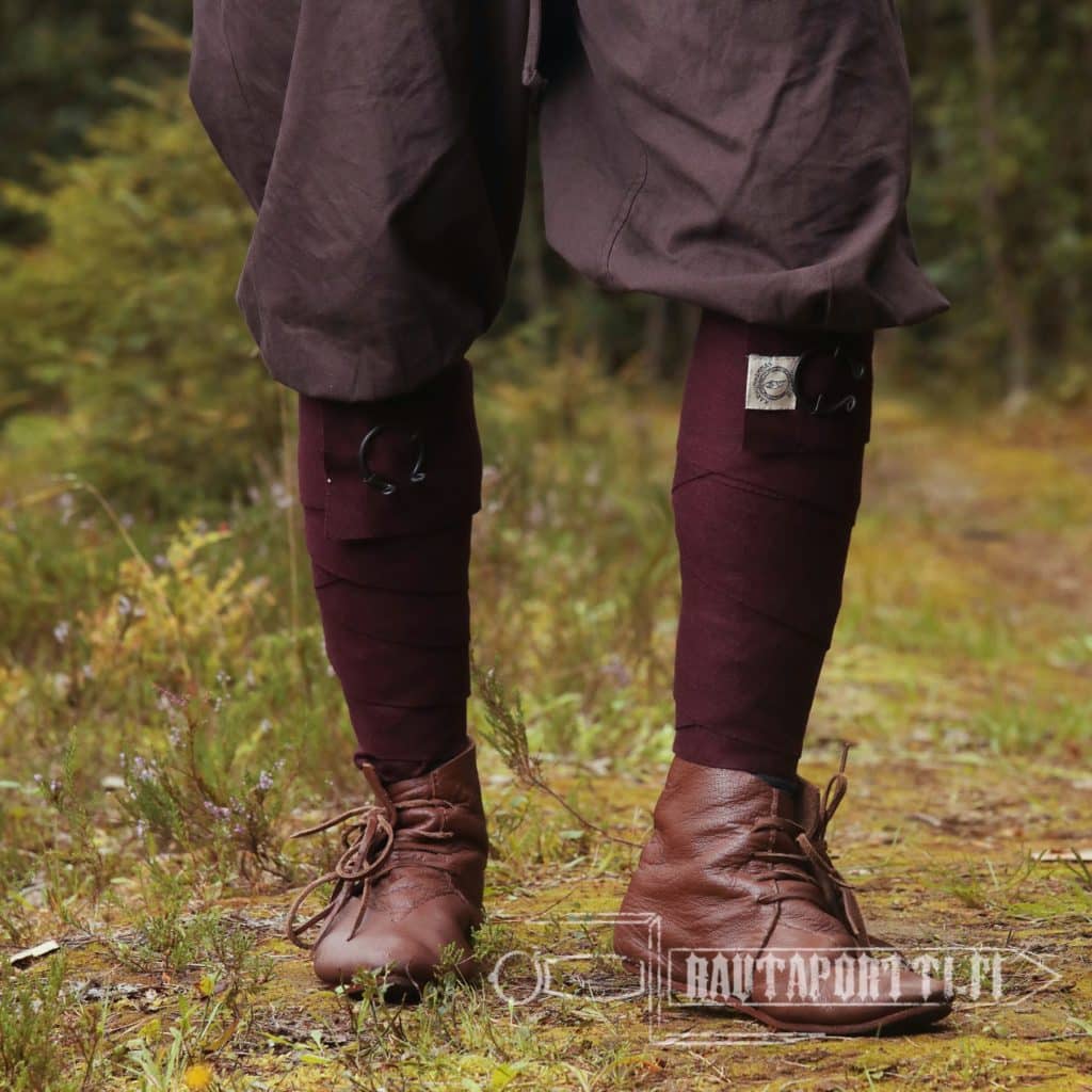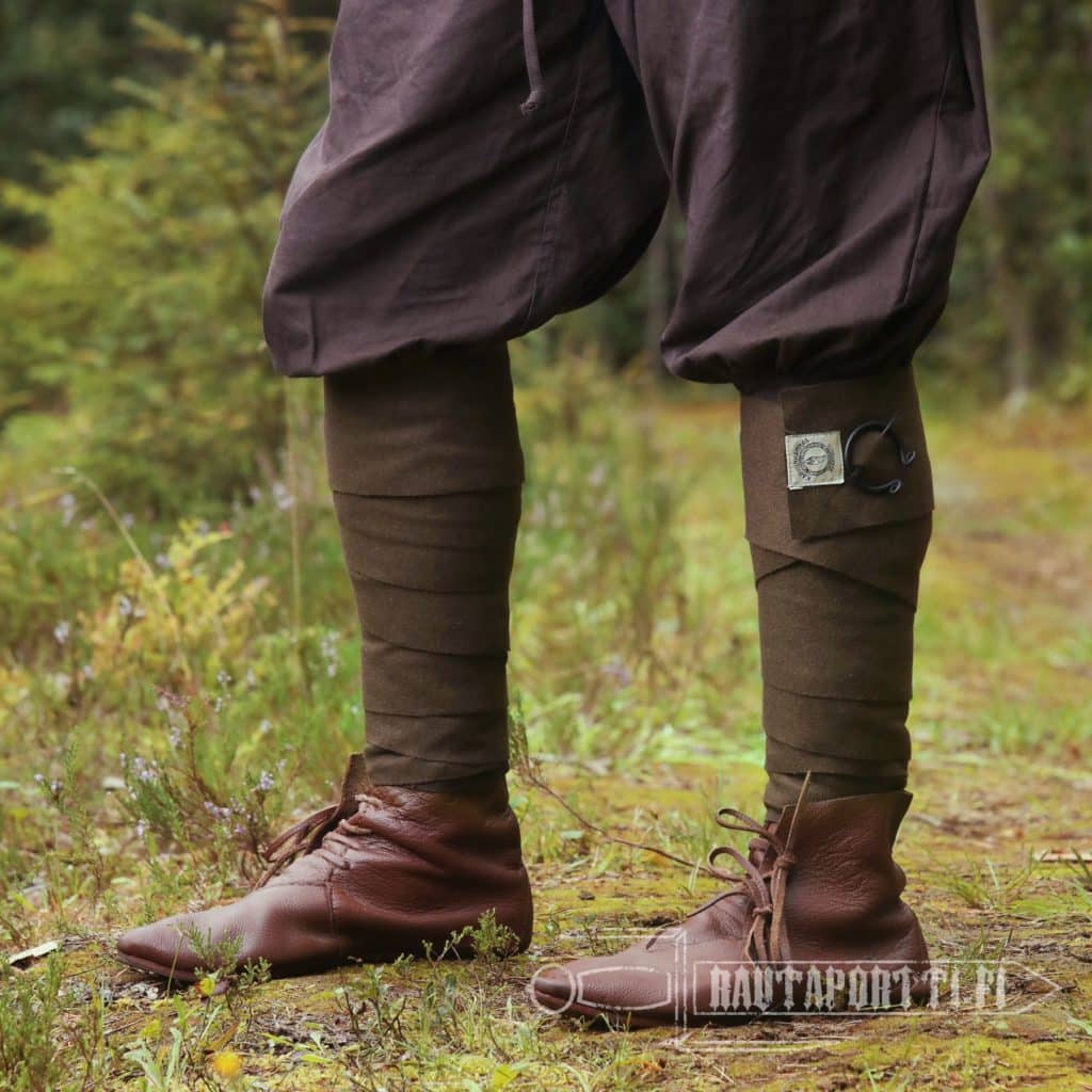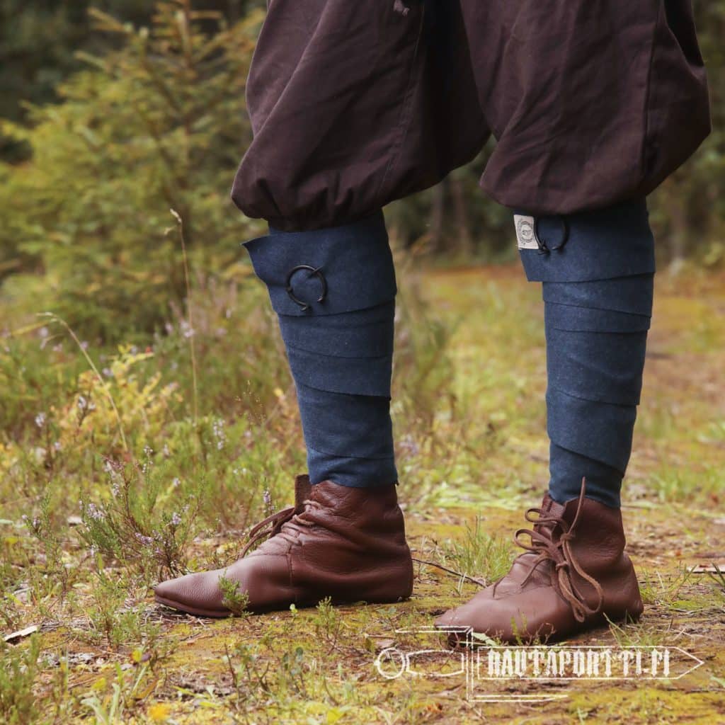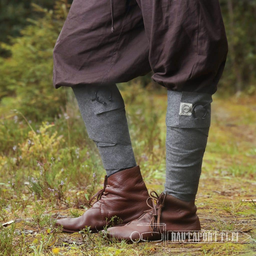 Throughout the ages legs have had a need for some protection from the weather and from the nature. Pants are naturally the go-to solution today but leg wrappings have been used through the ages in addition or instead of pants. The leg bindings/wrappings kept the trousers clean, dry and in good shape and naturally also gave the lower leg some additional protection both when walking in the wild as in combat. Even small cuts and scrapes could be fatal if infected so any protection from nettles, thistles, branches and any scratches came in handy. In addition to protection leg windings acted like a good pair of warm socks giving warmth during the cold seasons.