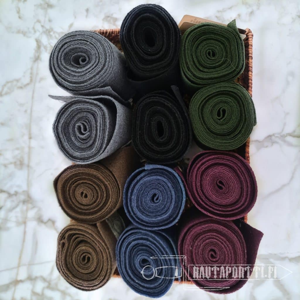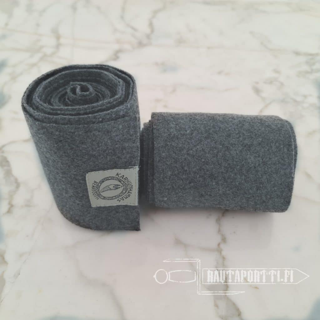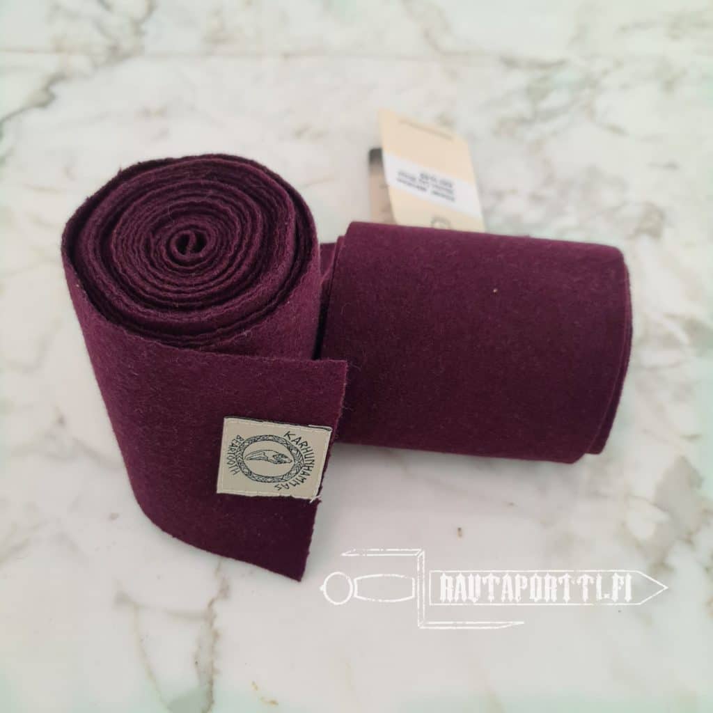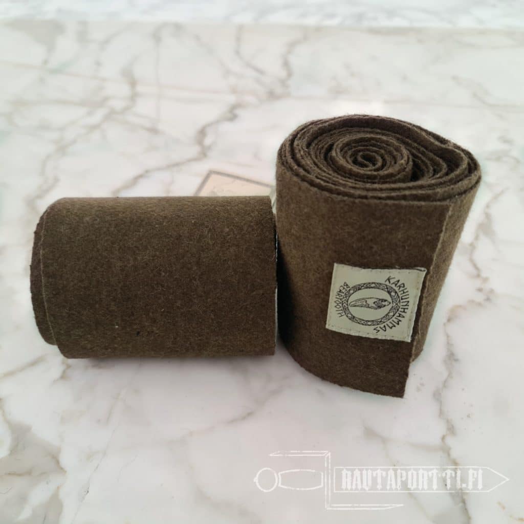 Two separate wrappings included (one for each leg) Made of 100% recycled wool Length approx. 3.5 m Width approx. 10 cm Close at the top with separate brooches, strings or hooks (not included) Available in 6 colors: brown, red, blue, grey, black and green