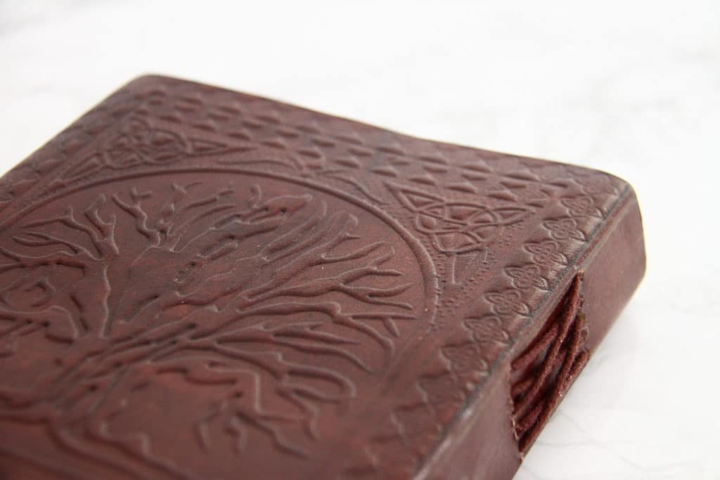 This journal has thick embossed leather covers and inside you can find approx. 200 empty handmade paper pages waiting for your notes. The brown leather cover has a World Tree embossed on it. The World Tree can be found from many old mythologies and legends as the most important structure the world has been built upon on. The World Tree can be found from Norse mythology (Yggdrasil), Finnish mythology (giant oak in Kalevala), Siberian beliefs, Mongolian mythology (which Genghis Khan spread when conquering the world), Native American beliefs as well as Slavic, Baltic, Turkic, Chinese and Indian old myths.